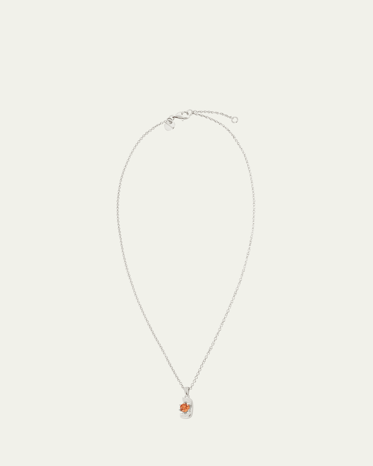Procaccia Jewelry necklace with Hebrew letter nun (n) pendant Necklace length: approx. 1618 inches (Adjustable) Rolo chain and pendant in 18karat solid gold Serene orange roundcut sapphire Lobster clasp Made in USA