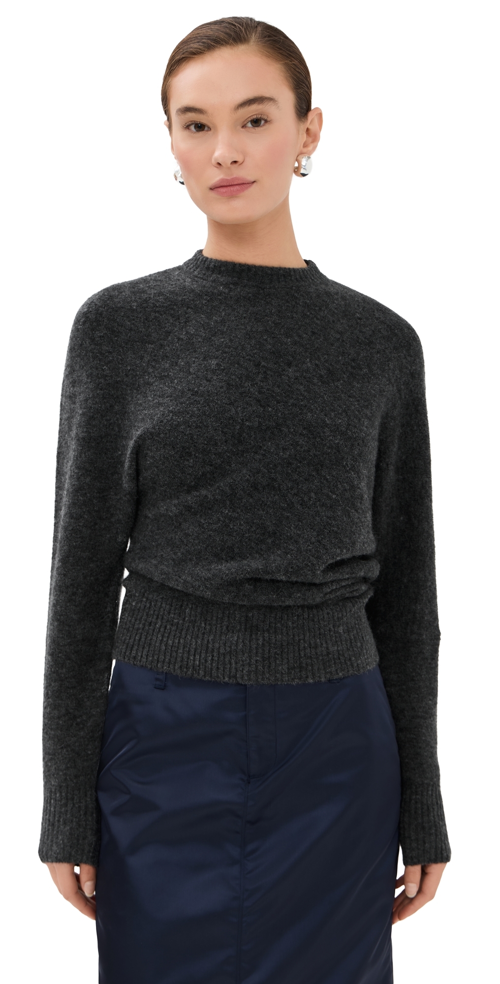 Fabric: Lightweight stretch knit. Asymmetrical silhouette. Ribbed edges. Crew neck. Long sleeves. Shell: 47% polyamide/29% merino wool/19% alpaca/5% spandex. Hand wash. Imported, China. Measurements: Measurements from size S Length: 22.5in / 57.0cm, from shoulder