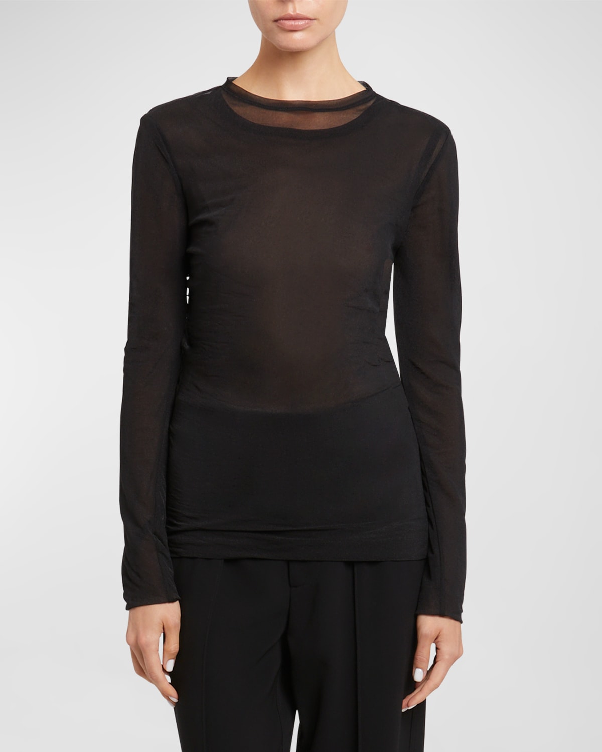 Proenza Schouler "Dara" sheer doublelayered technical jersey top Crew neckline Long sleeves Slim fit Pullover style Polyester Dry clean Made in USA