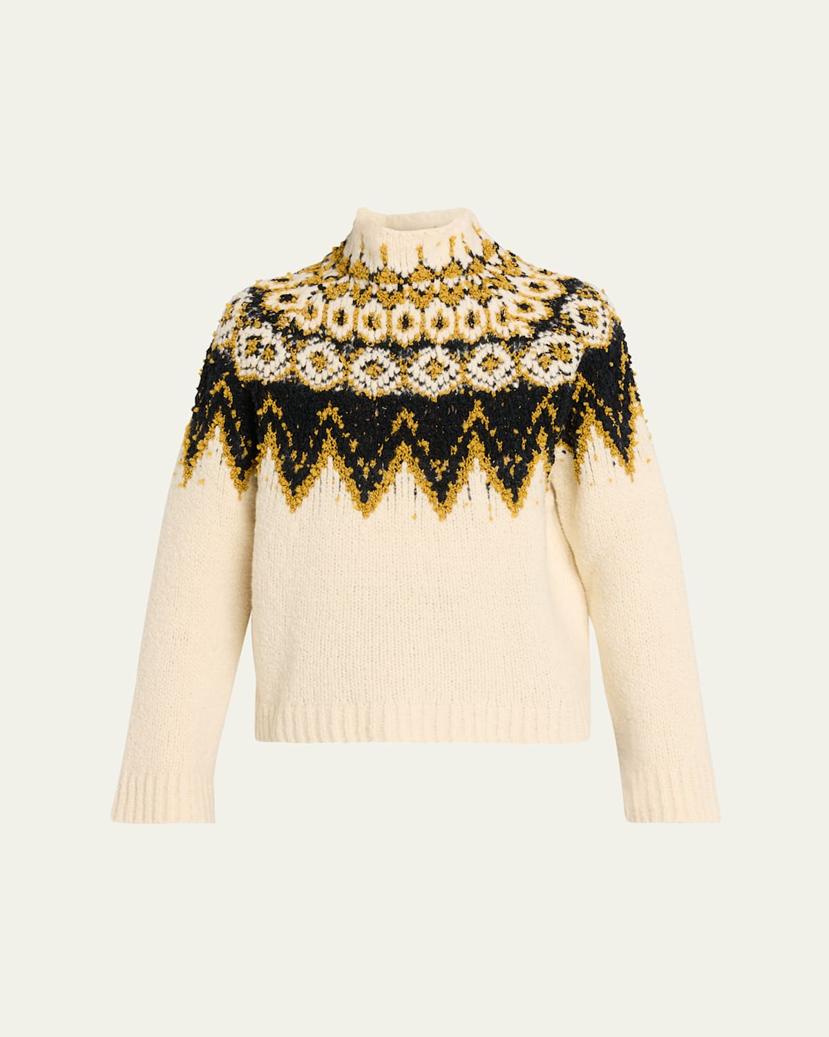 Crafted in a chunky wool blend, the "Lizzy" sweater by Proenza Schouler features a fairisle motif with textured detailing. Turtleneck Long raglan sleeves Relaxed fit Hem sits at the hip Pullover style Wool/cotton/nylon/polyamide Dry clean Imported