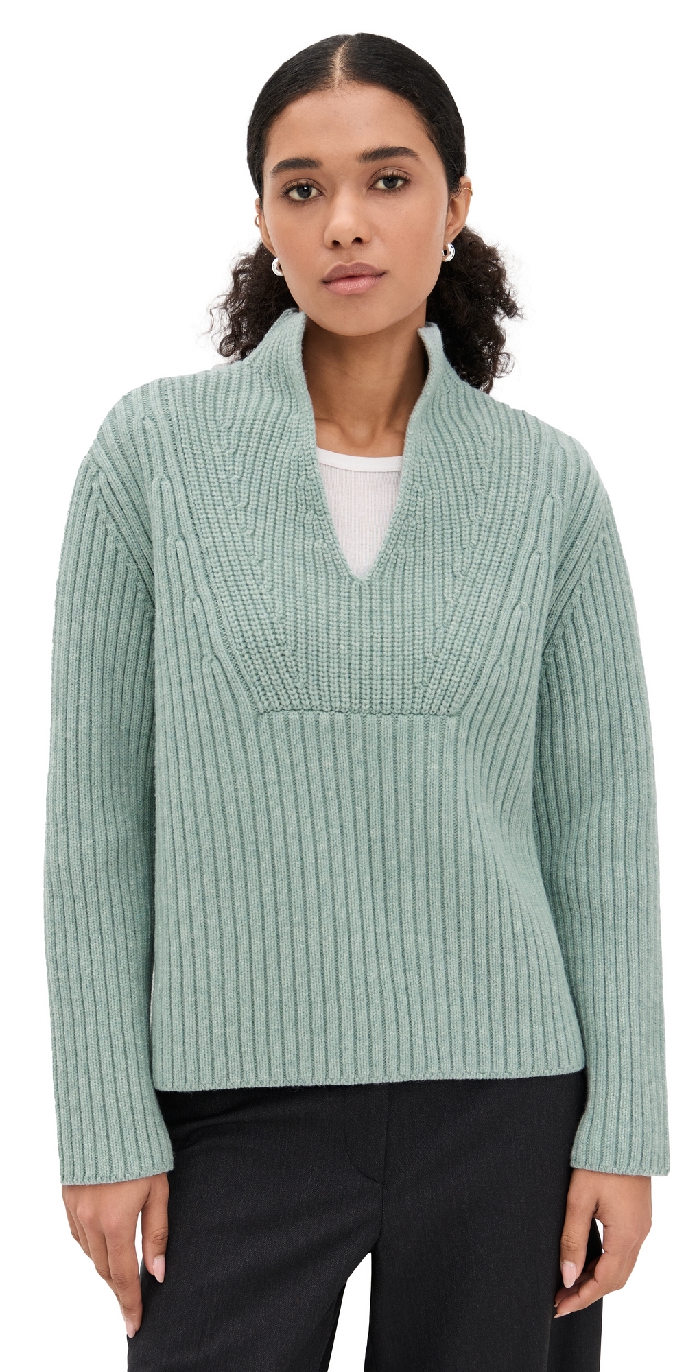 Fabric: Mid-weight shaker knit with stretch. Collared v neck. Long sleeves. Shell: 100% wool. Dry clean. Imported, Turkey. Measurements: Measurements from size XS Length: 20.5in / 52.0cm, from shoulder