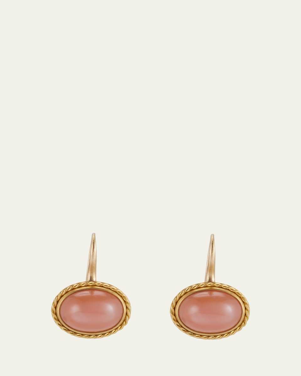 22K Yellow Gold Peach Moonstone Chorda Drop Earrings