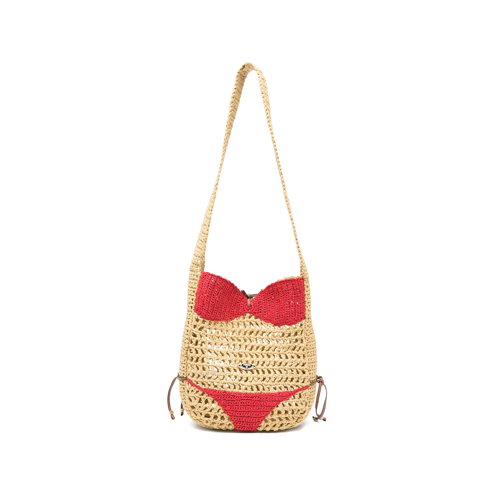 beige woven construction bikini-patch detail single shoulder strap logo plaque to the front gold-tone hardware leather trim This piece comes complete with a protective dust bag.