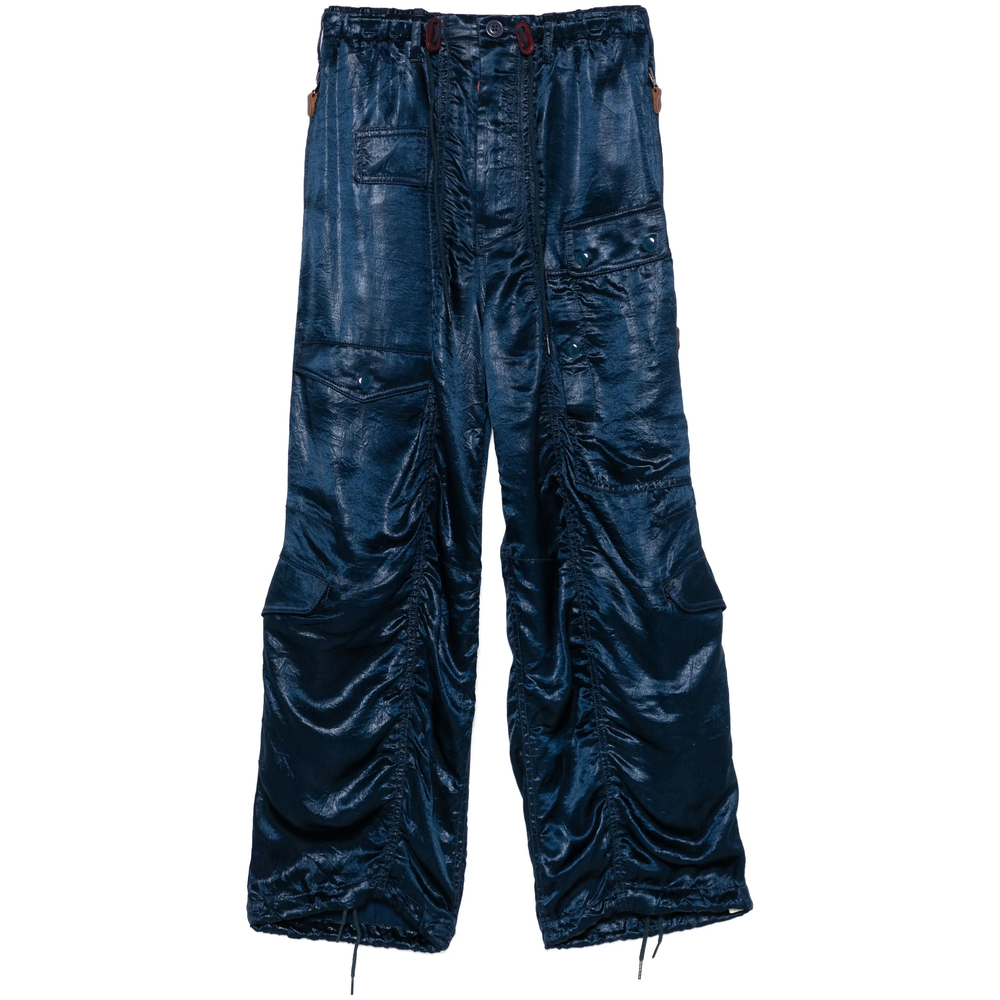 navy blue front button and zip fastening drawstring fastening elasticated waistband two side zip-fastening pockets
