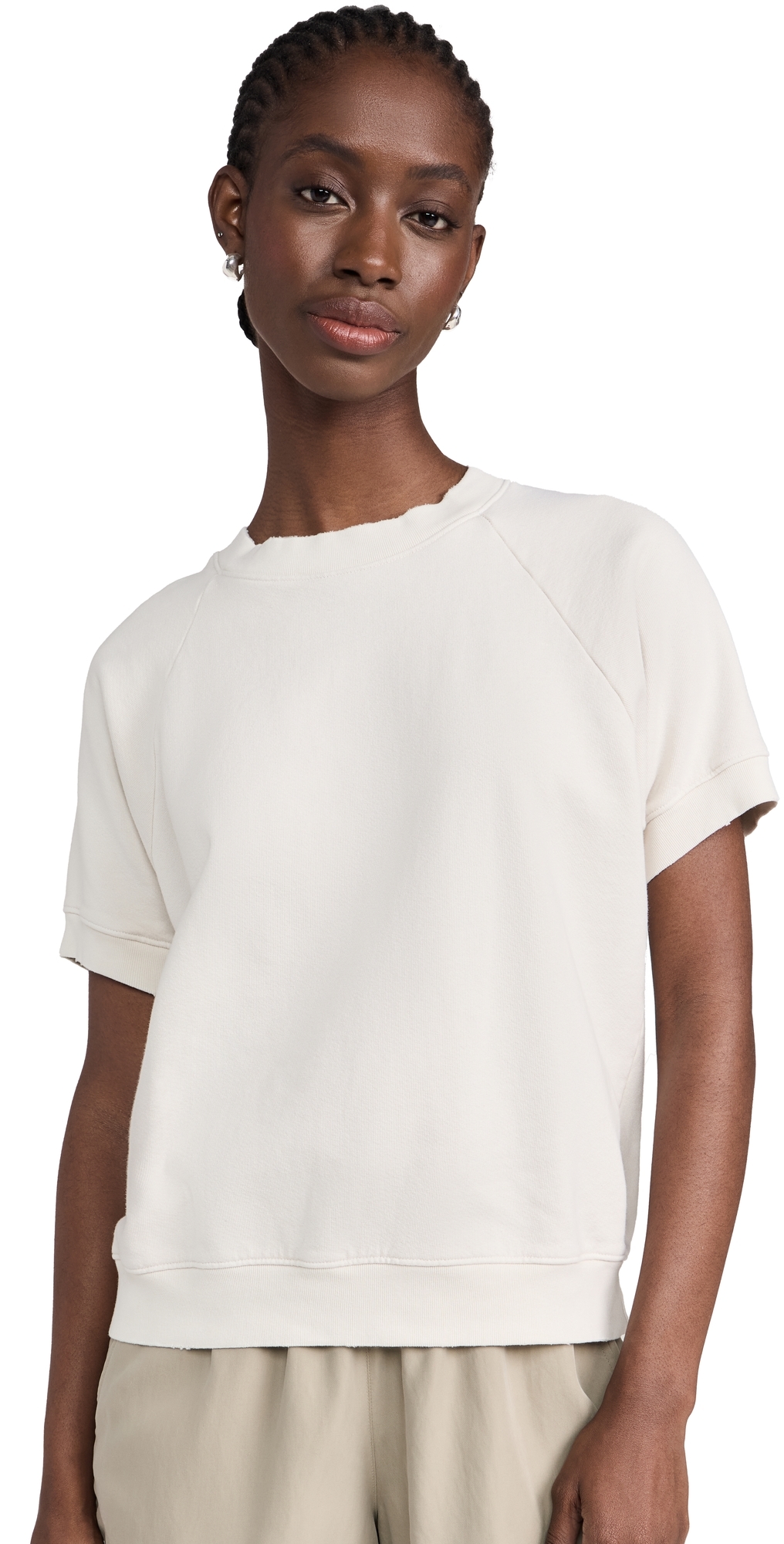 Fabric: Mid-weight fleece. Short raglan sleeves. Ribbed edges. Crew neck. Shell: 100% cotton. Wash cold. Made in the USA. Measurements: Measurements from size XS Length: 22.5in / 57.0cm, from shoulder