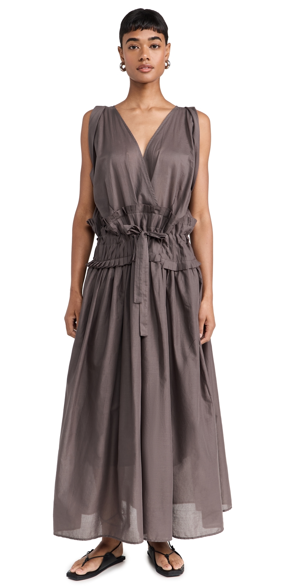Fabric: Lightweight, non-stretch weave. Fixed cuffs. Corset-inspired ruffled detailing. Plunging surplice neckline. Drawstring at waist. On-seam side pockets. Shell: 100% cotton. Unlined bodice, lined skirt. Wash cold or dry clean. Made in the USA of imported materials. Measurements: Measurements from size XS/S Length: 53.5in / 136.0cm, from shoulder