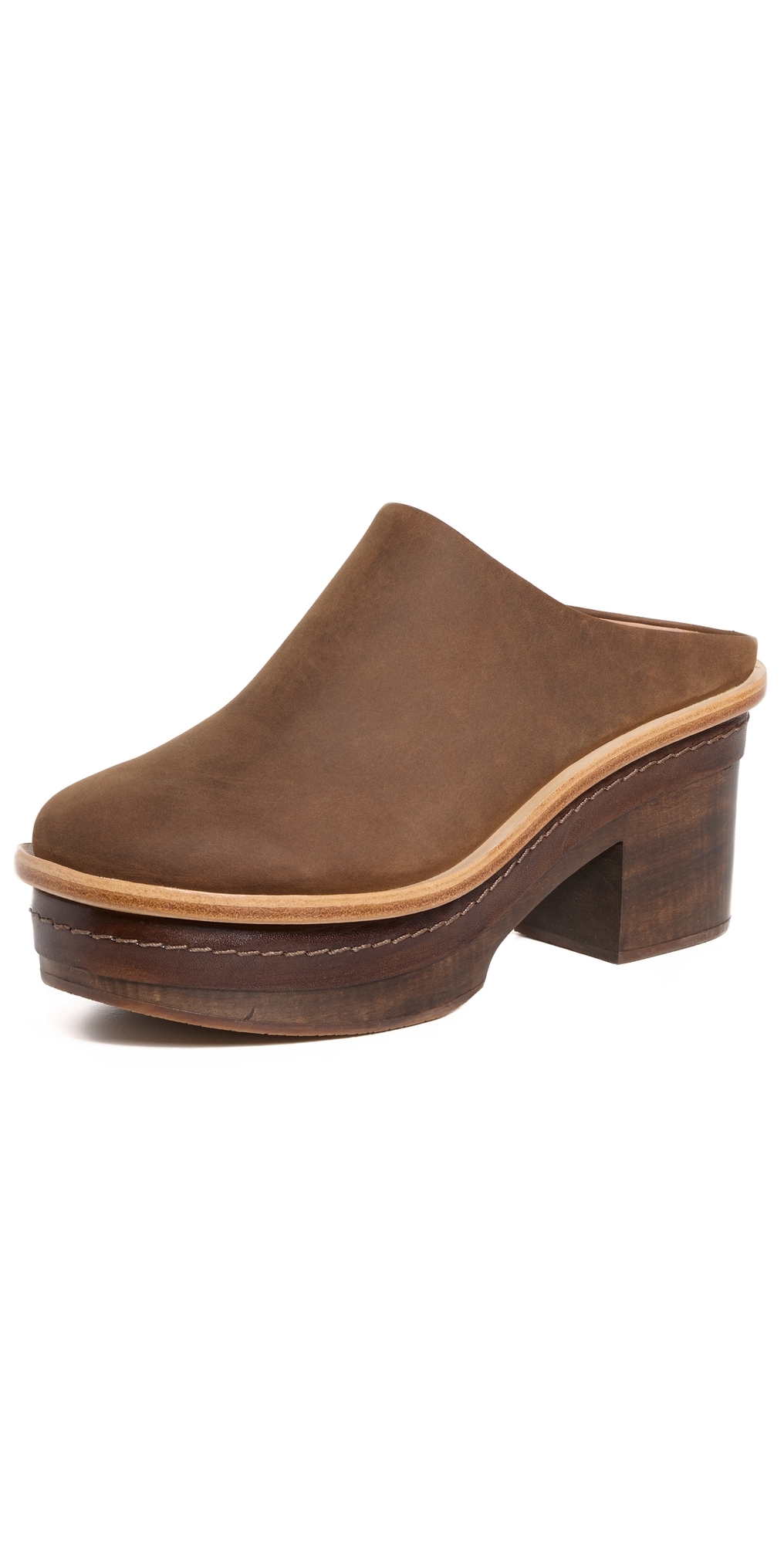 Upper: Cowhide suede. Lining: Kidskin. Lightly cushioned leather footbed. Wooden heel and platform. Slip on. Round toe. Rubber sole. Imported, Peru. This item cannot be gift-boxed. Measurements: Heel: 3.25in / 80mm Platform: 1.5in / 35mm