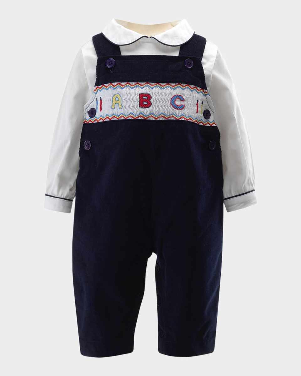 Boy's ABC Smocked Overall W/ Shirt Set, Size 6M-24