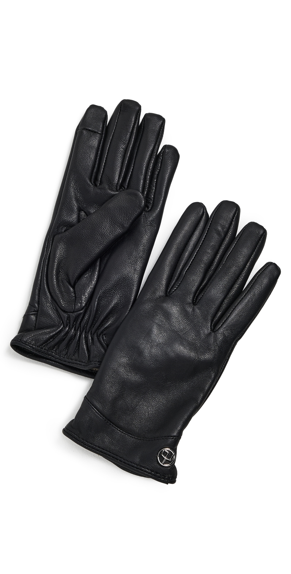 Leather: Lambskin. Elastic cuffs. Silver-tone logo accents. Shell: 100% leather. Lining: 100% cashmere. Imported, China.