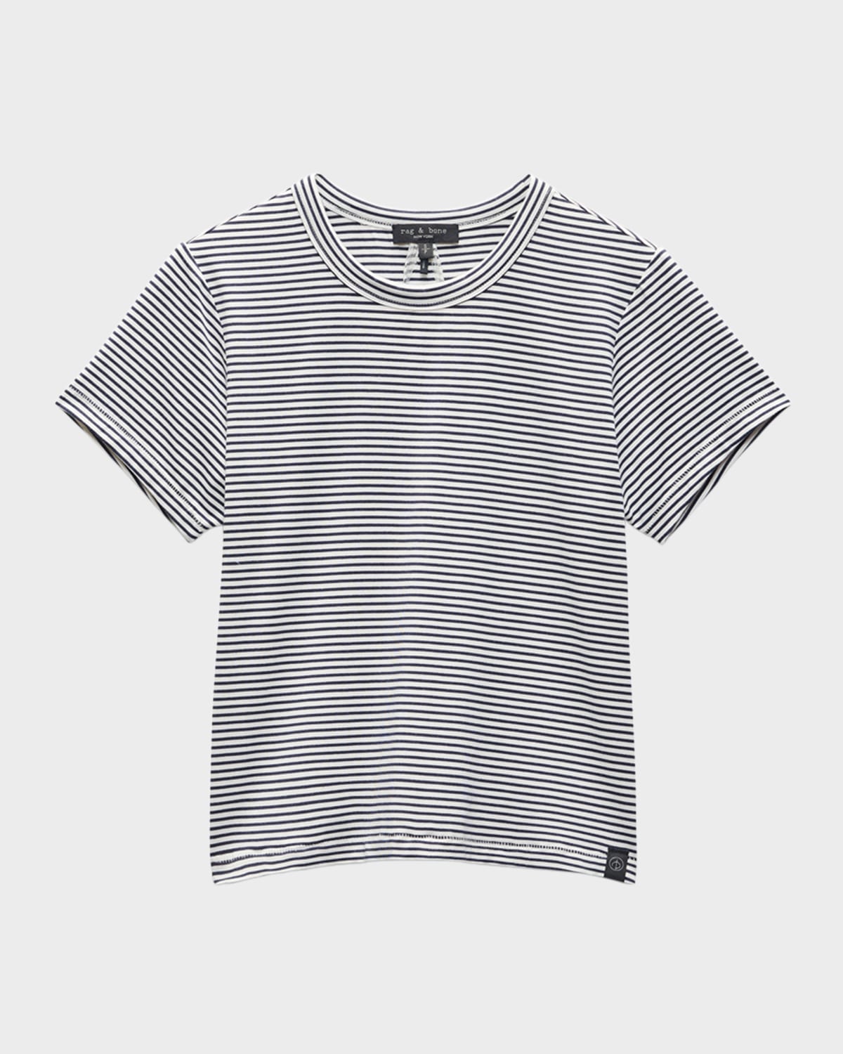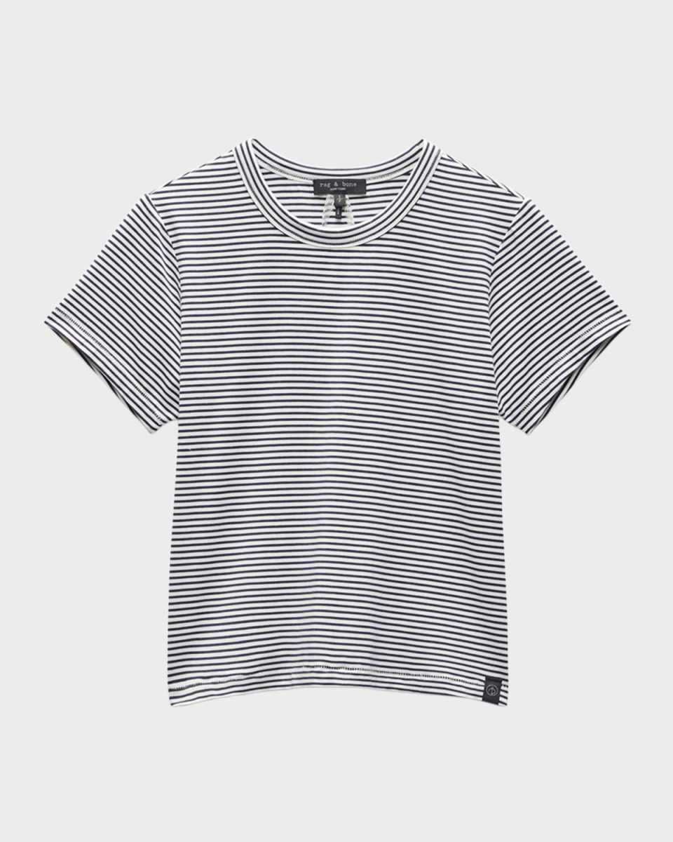 Rag amp; Bone "Luca" striped baby tee in stretchknit Crew neckline Short sleeves Easy fit Hem sits at the hip Pullover style Modal/spandex Machine wash Imported