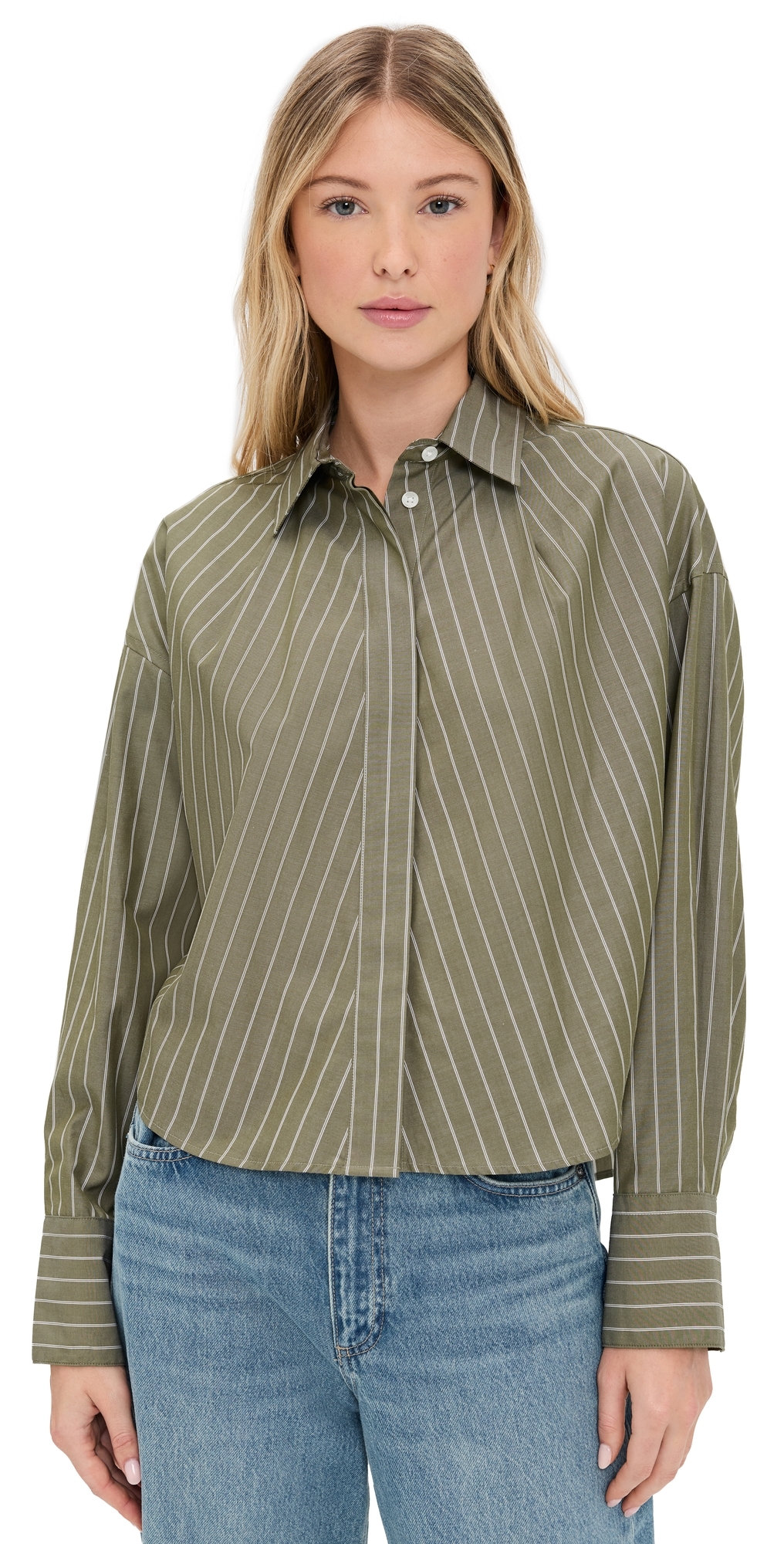Fabric: Lightweight, non-stretch poplin. Striped print. Collared neck. Long sleeves with button cuffs. Covered button placket. Shell: 100% cotton. Wash warm. Imported, Vietnam. Measurements: Measurements from size XS Length: 19.75in / 50.0cm, from shoulder to front hem Length: 21.75in / 55.0cm, from shoulder to back hem