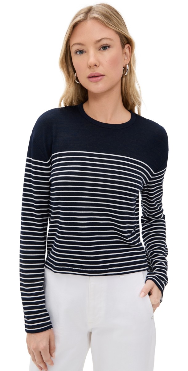 The Knit Stripe Boxy Long Sleeve Tee Navy Ivory