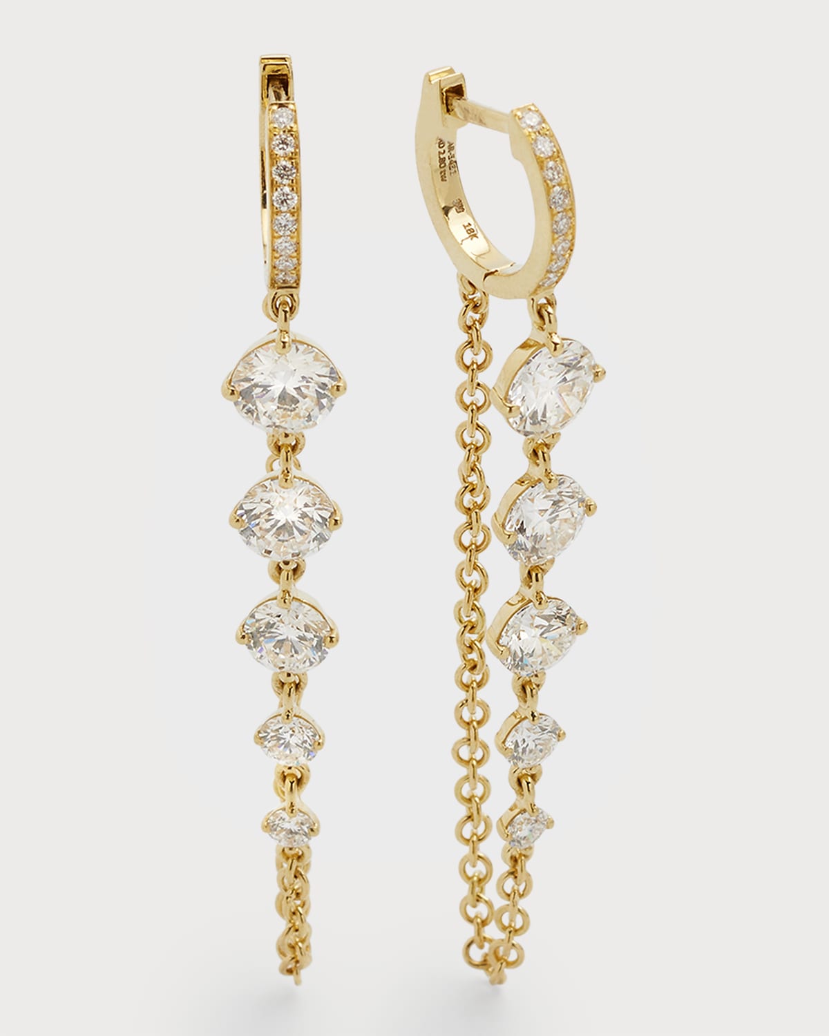 Rahaminov Diamonds earrings 18karat yellow gold Hoops with diamonds Graduating diamond chains Total carat weight: 2.80 For pierced ears Made in USA