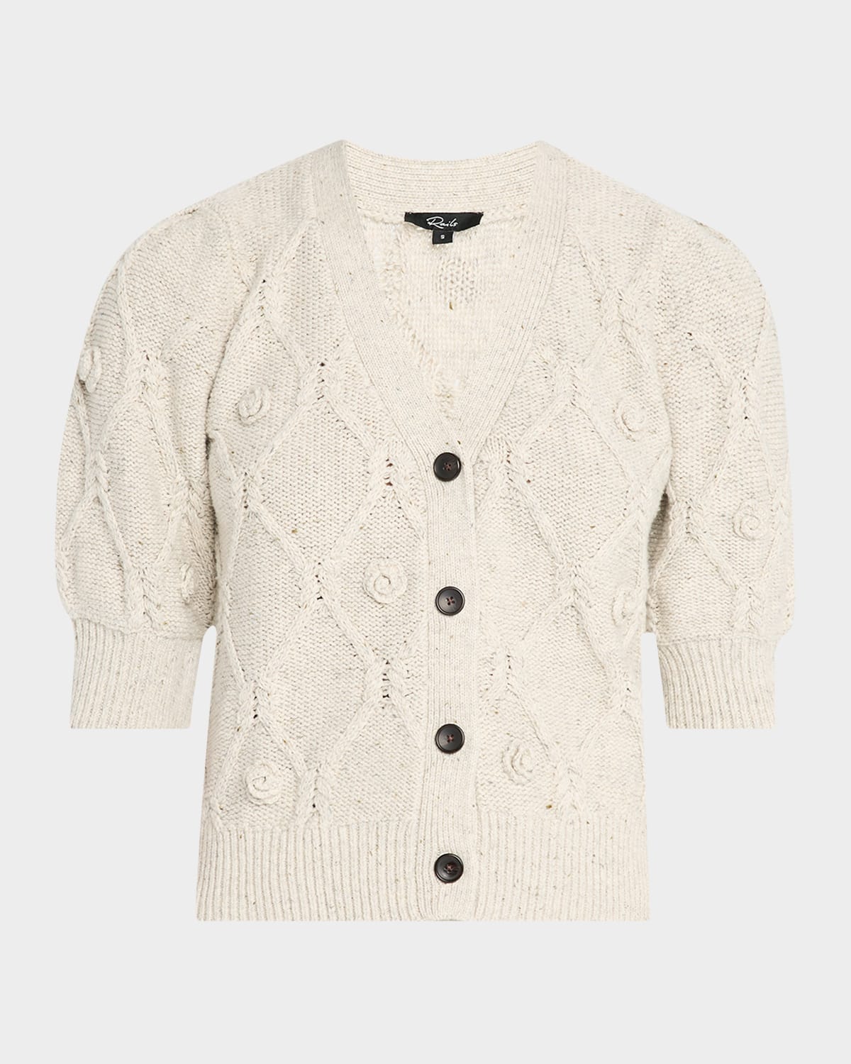 Rails "Isla" cardigan adorned with an argyle texture and delicate embroidered florals Approx. 23"L from shoulder to hem V neckline Elbowlength puff sleeves Slightly cropped length Ribbed cuffs and hem Button front closure Cotton/Eclon® nylon/wool Unlined Hand wash, wash separately Imported