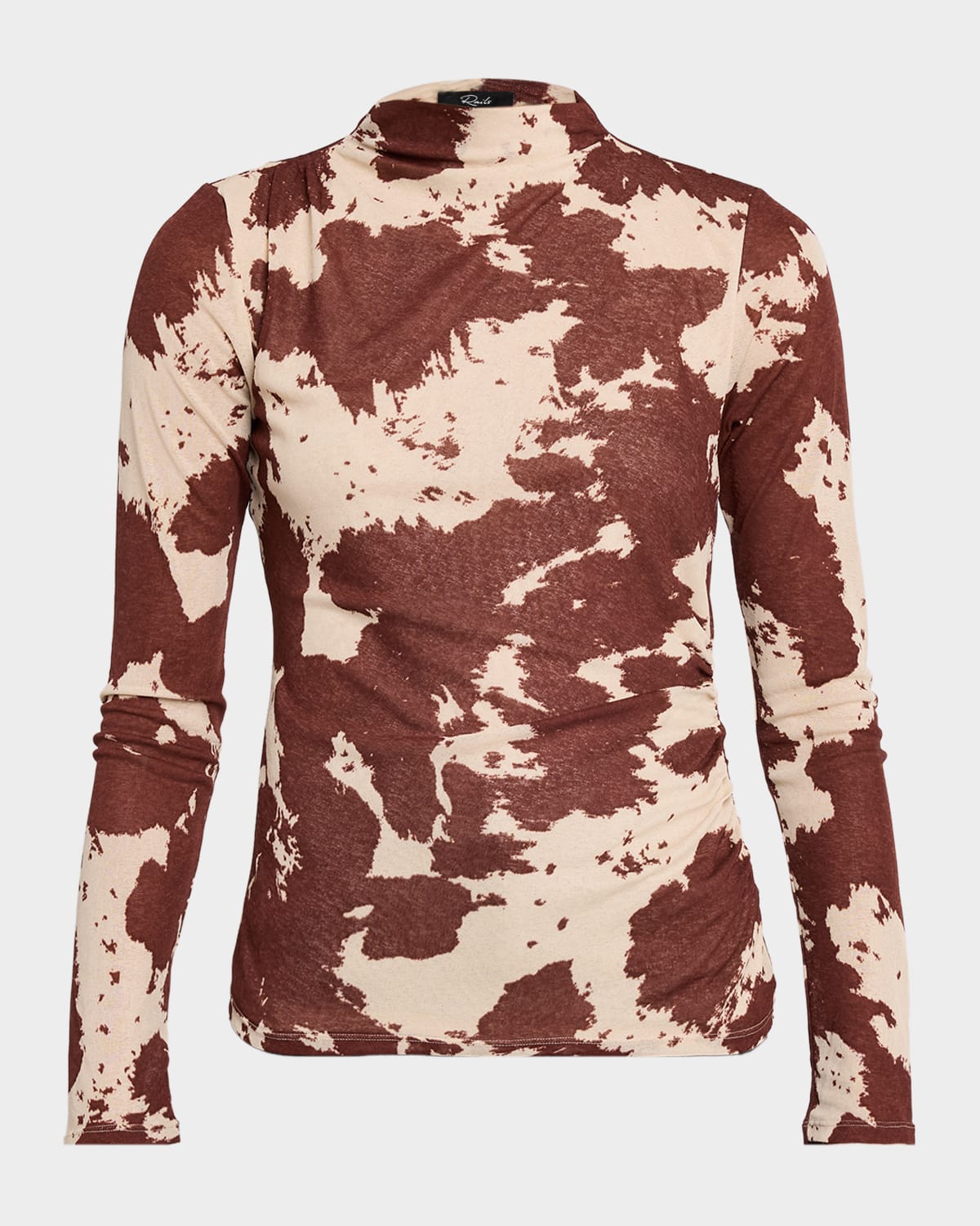 Crafted from soft mesh, the "Joelle" top by Rails features an allover cowgirl print and figureflattering draping throughout. High neckline Long sleeves Classic fit Hem sits at the hip Pullover style Polyester Dry clean only Imported
