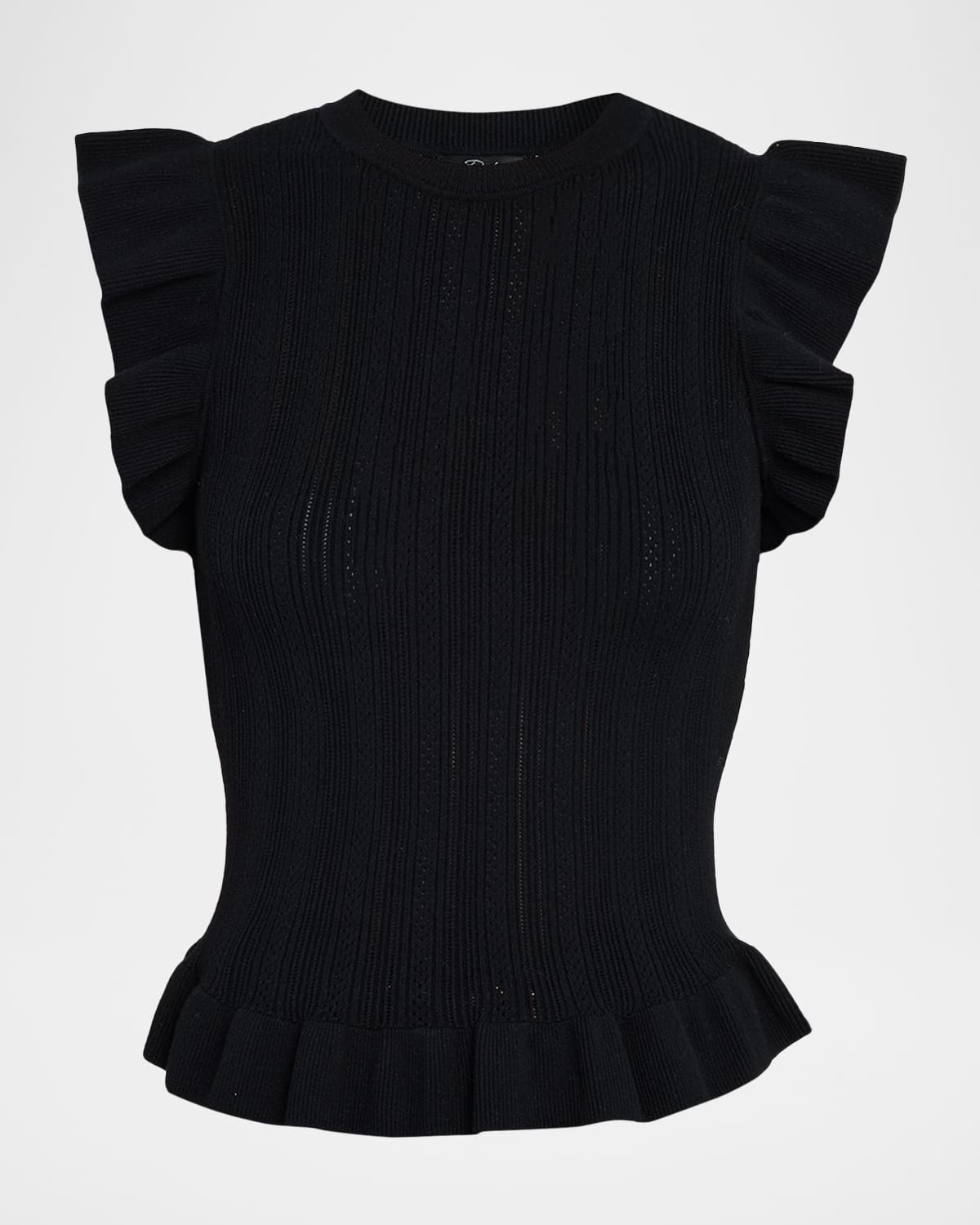 Knit from a finegauge fabric, the "Marci" sweater by Rails features a ruffled hem and matching flutter sleeves Crew neckline Sleeveless Slim fit Hip length Slipover style Promodal® rayon/polyester/elastane Imported