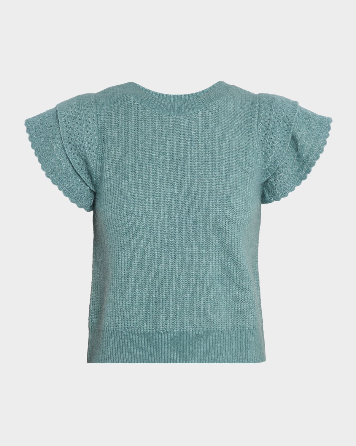 Framed with twotiered ruffles at the sleeves, the "Stasia" sweater by Rails is crafted from a subtly ribbed lightweight wool blend Approx. 20.5"L from shoulder to hem Crew neckline Short sleeves Relaxed fit Hip length Ribbed hem Pullover style Wool/Amni® nylon Imported