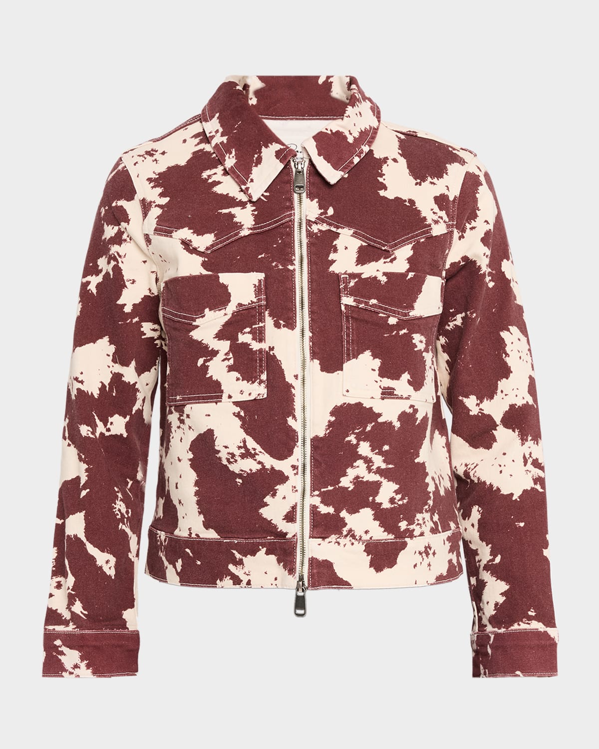Crafted in cowprint denim, the "Trabuco" jacket by Rails features Westerninspired details and a twoway zipfront for versatile styling. Spread collar Seamed yoke Long sleeves Dual chest pockets Classic fit Hem sits at the hip Cotton/elastane Machine wash cold Imported