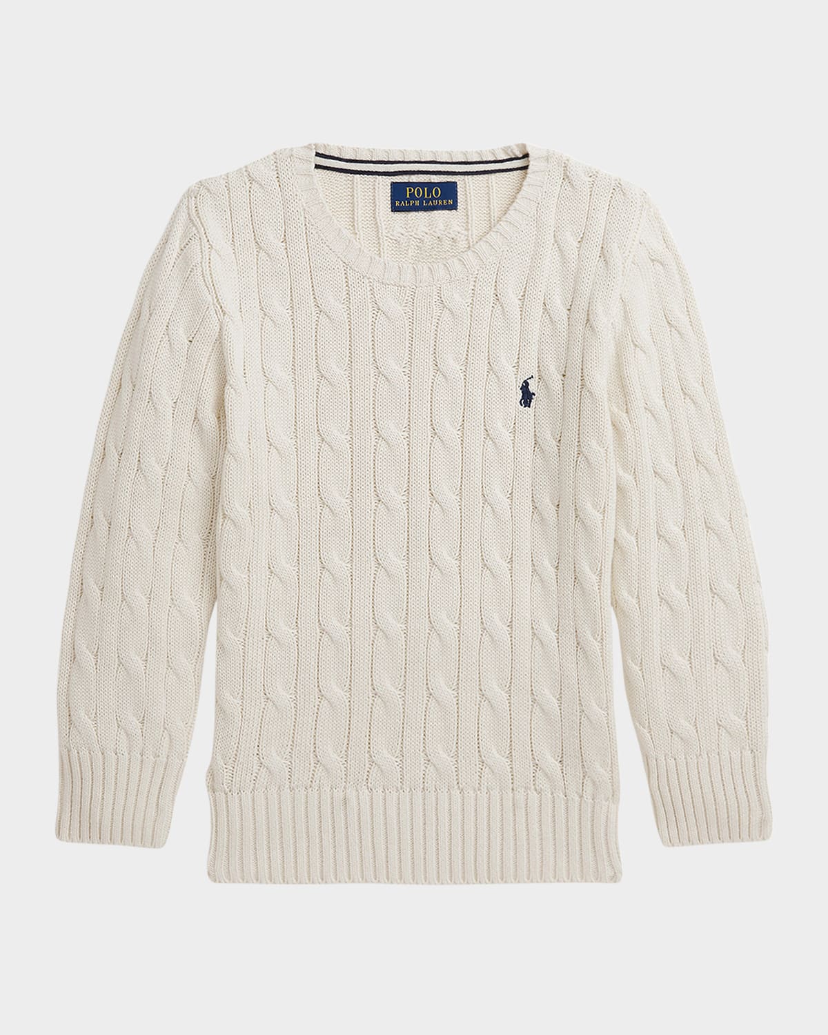 Ralph Lauren cableknit sweater made with combed cotton yarn and washed for added softness. Finished with a signature embroidered Pony on the left chest. Crew neckline Long sleeves Ribbed cuffs and hem Pullover style Cotton Machine wash Imported