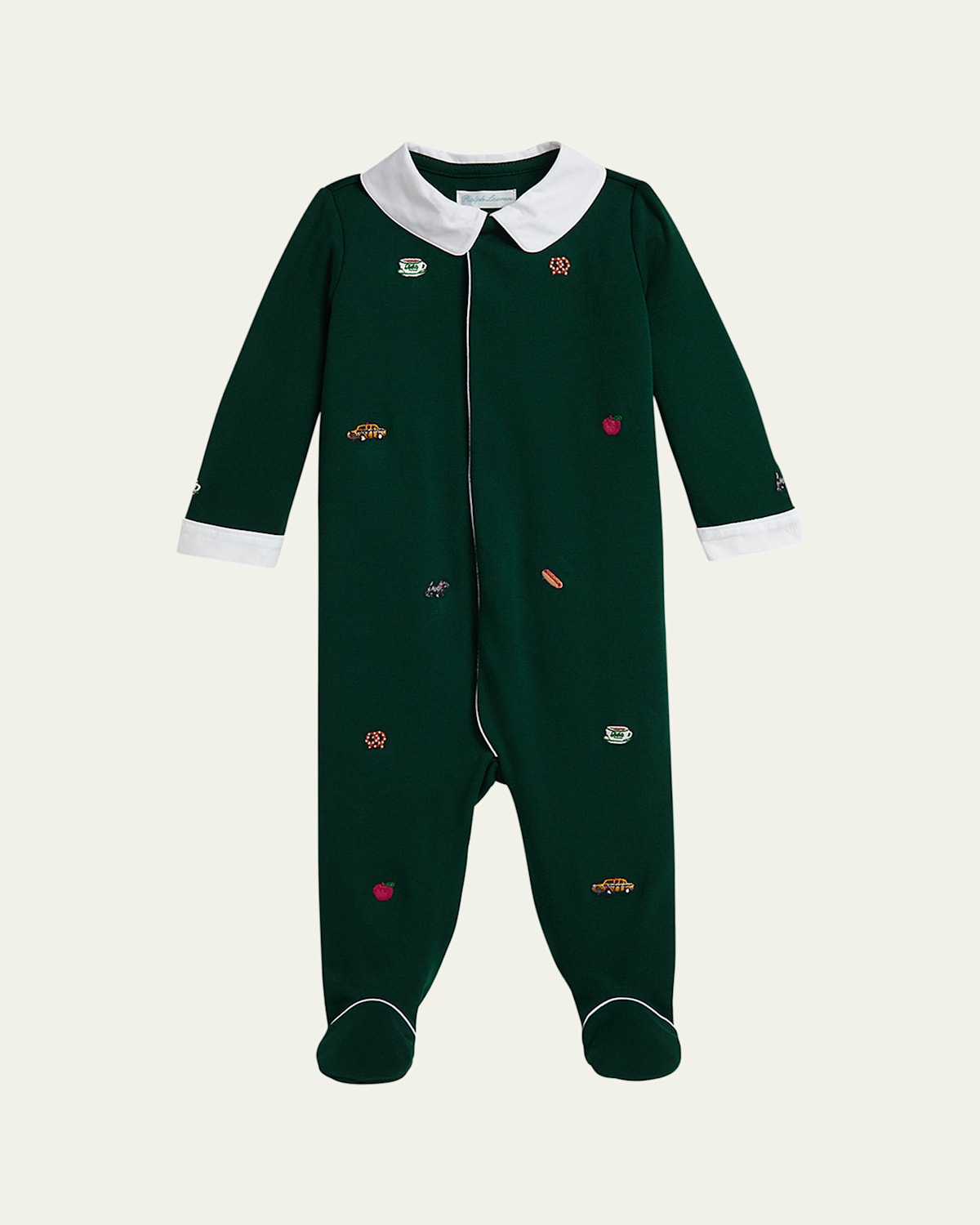 Ralph Lauren Childrenswear coverall features broadcloth details, piped trim, and embroidered graphics inspired by New York City Peter Pan collar Long sleeves with button cuffs Full length Footed silhouette Front snap placket Padded satin hanger included Cotton/polyester Machine wash Imported