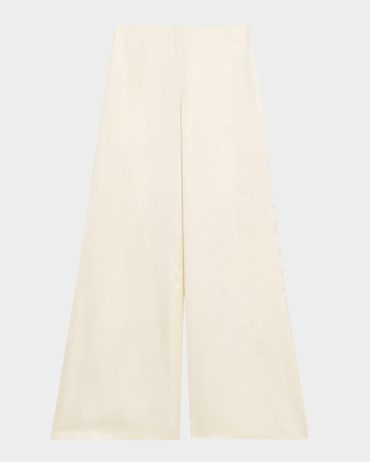 Ralph Lauren Collection "Daria" pants tailored in a flowy silk satin Mid rise sits high on hip Flat front Wide legs Full length Side zip Silk Made in Italy