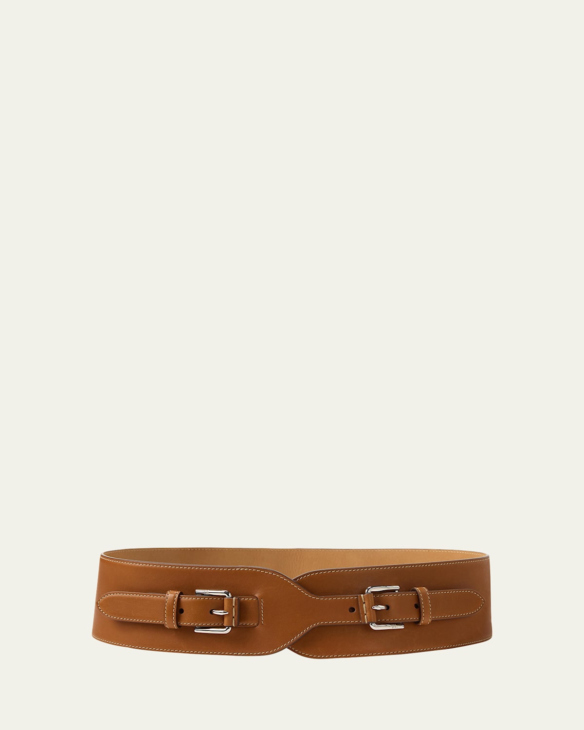 Ralph Lauren Collection double buckle waist belt in calfskin leather Wide width Double buckle closure Leather Made in Italy
