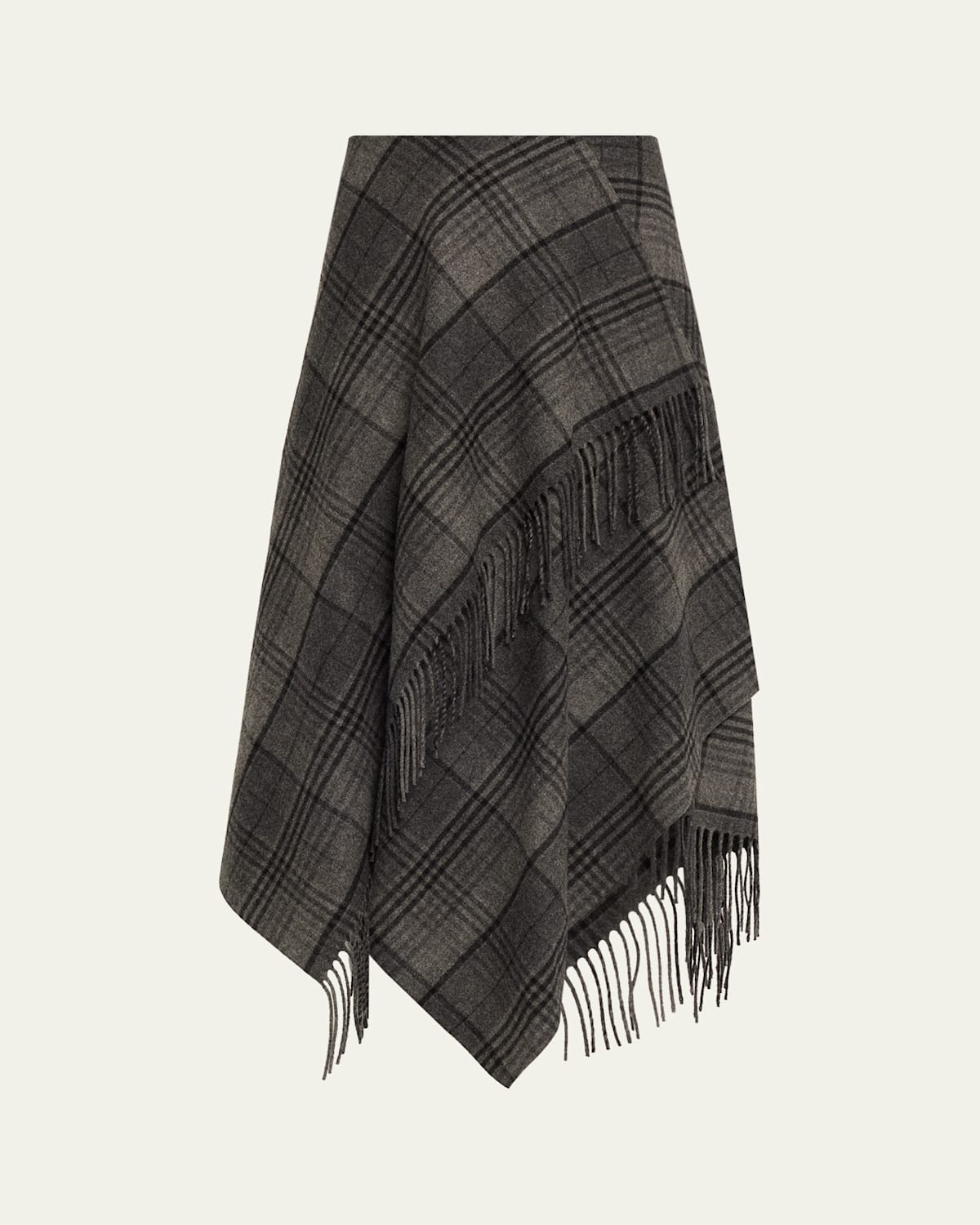 Fringed Plaid Wrap Midi Skirt