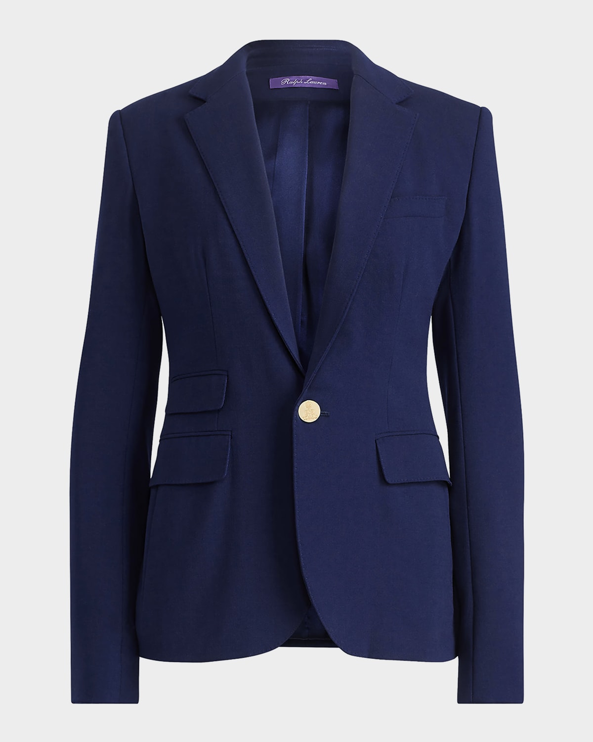 Ralph Lauren Collection "Parker" Italian wool crepe jacket finished with topstitching Notched lapels; singlebreasted front Long sleeves; button cuffs Front flap pockets Tailored fit Wool/elastane Lining: Cupro/elastane Dry clean Made in USA