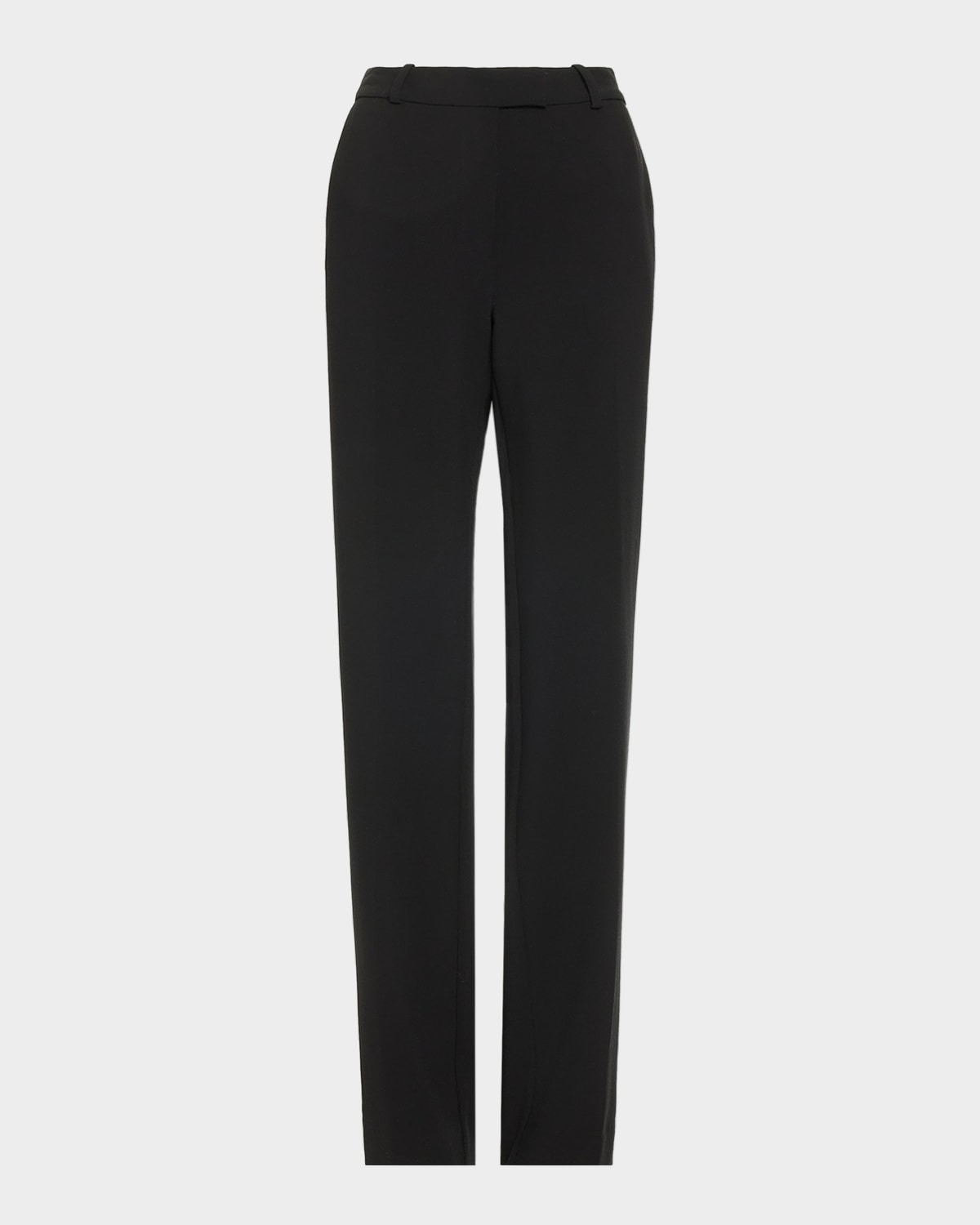 Ramy Brook "Doug" tailored pants detailed with legelongating vertical front creases High rise Slanted side and back welt pockets Full length Straight legs Hook/zip fly; belt loops Polyester/viscose/elastane Lining: Polyester/spandex Dry clean Imported