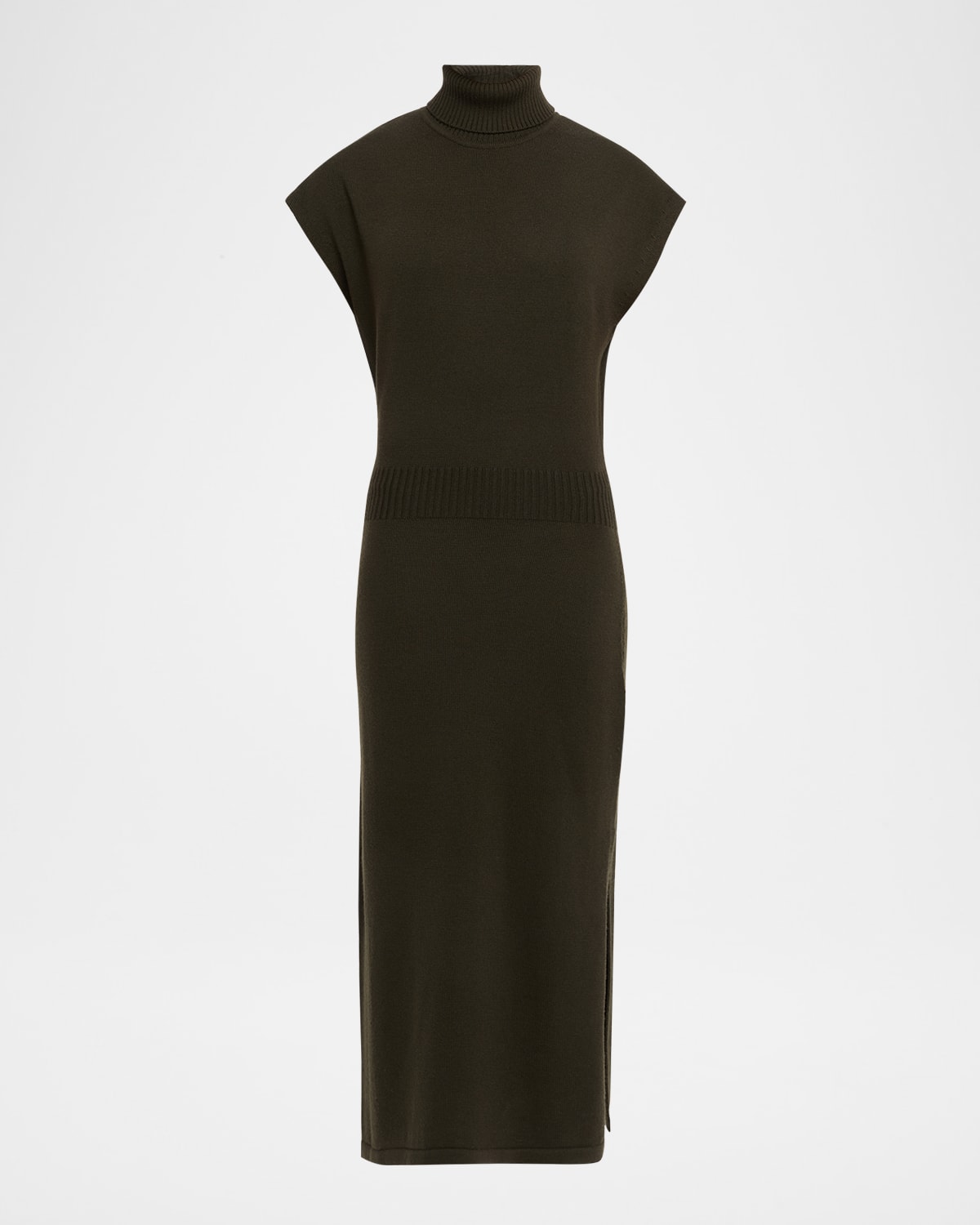 Natalie Wool Short-Sleeve Turtleneck Midi Dress
