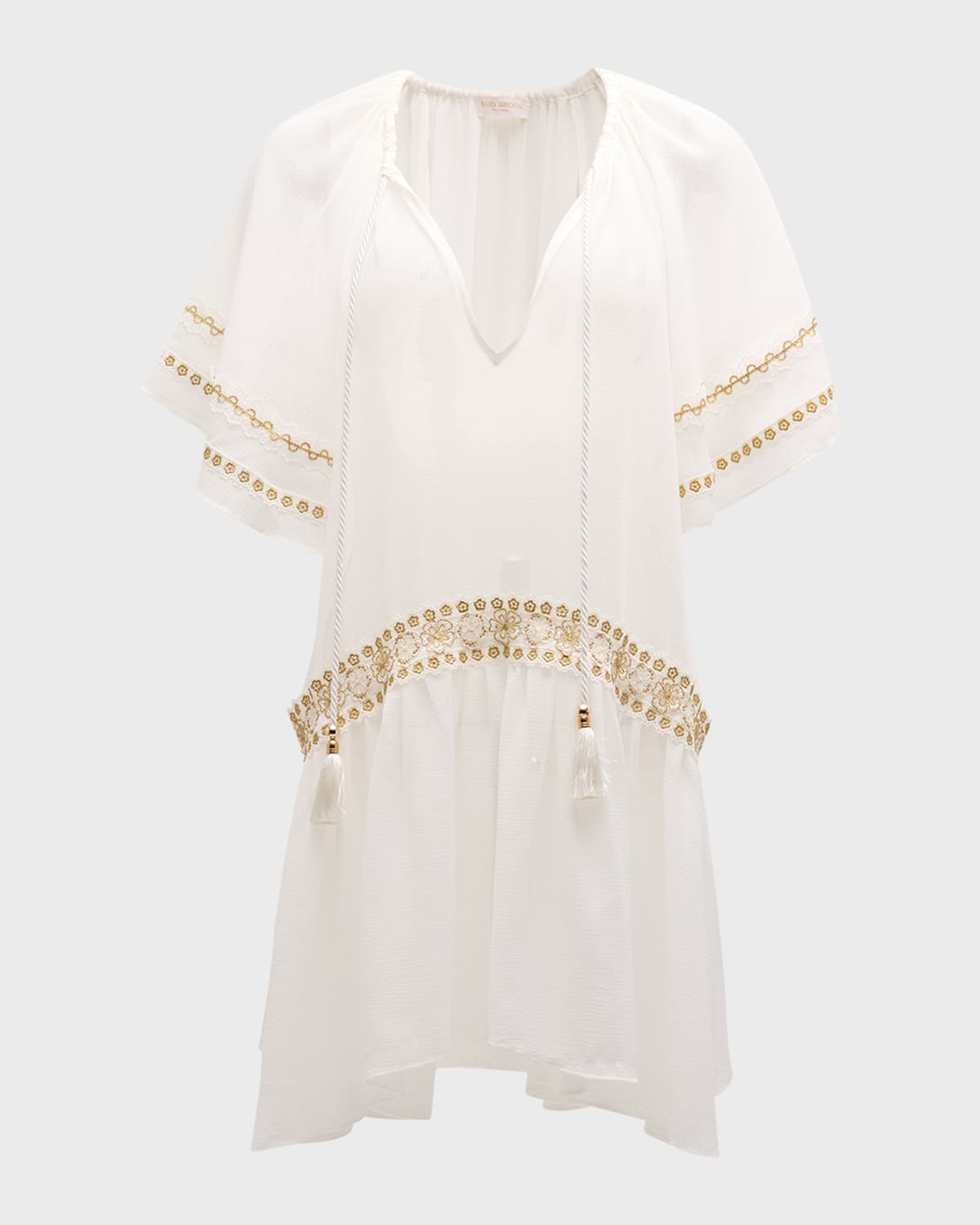 Whitley Tassel-Tie Embellished Mini Coverup Dress