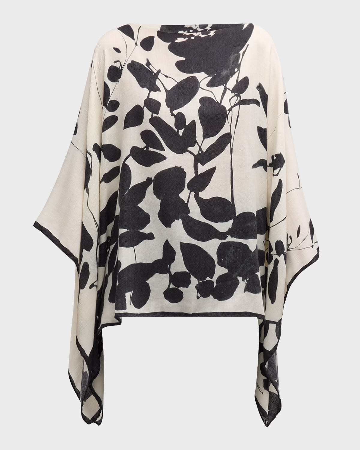 Rani Arabella "Placed Flower" limited edition printed cashmereblend scarf poncho Approx. 52"L Skilled artisans have carefully rolled the hem into an immaculate rounded edge Boat neckline Draped sleeves Relaxed silhouette Pullover style Item Weight (Lbs.): 1.0 Cashmere/silk/wool Dry clean Made in Italy