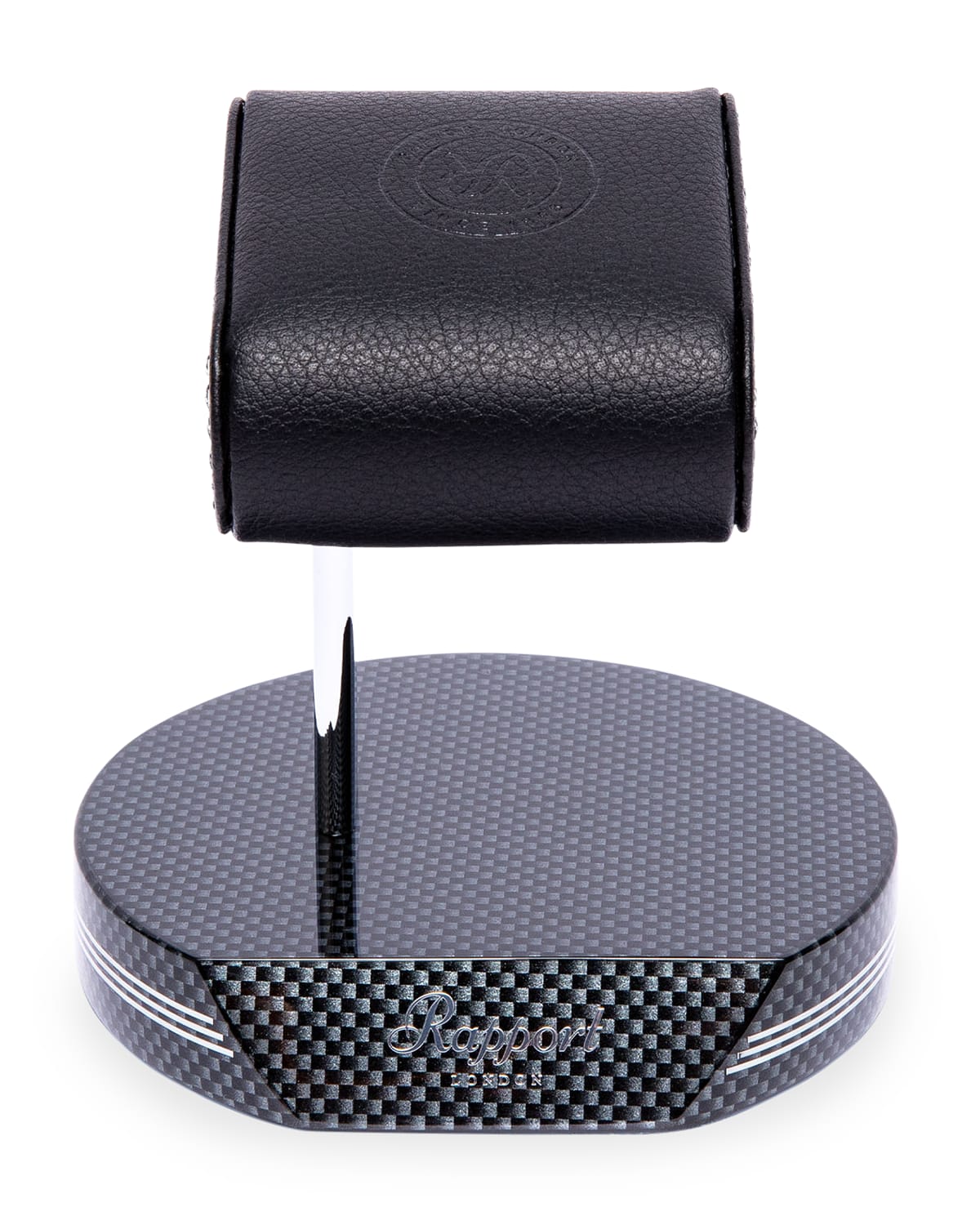 A smart bedside or office accessory to hold your watch when you're not wearing it. Rest your precious timepiece on a premium leather watch cushion Handmade watch stand made of leather Approx. 5.1"L x 4.5"W x 4.9"T Item Weight (Lbs.): 0.8 Wipe clean Made in United Kingdom