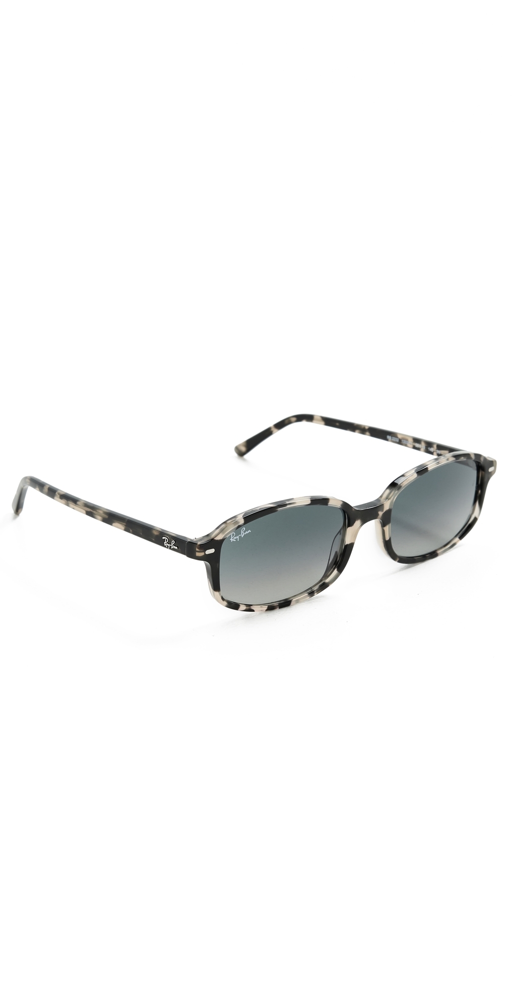 Gradient lenses. Soft case included. Square frame. Non-polarized lenses. Imported, China. Acetate frame. Plastic lenses. Measurements: Width: 6in / 15cm Height: 1.5in / 4cm Lens Width: 56mm Bridge: 19mm Arms: 145mm