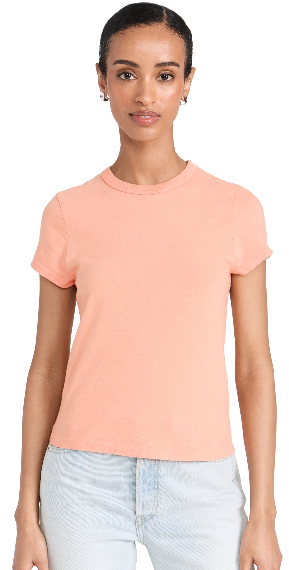 Fabric: Lightweight jersey. Crew neck. Short sleeves. Shell: 100% cotton. Wash cold. Made in the USA. Measurements: Measurements from size S Length: 21.25in / 54.0cm, from shoulder