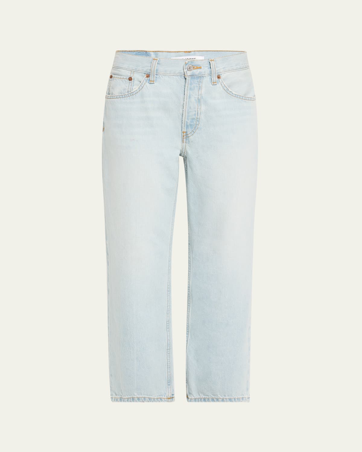 RE/DONE wideleg jeans in lightwash denim Low rise; sits at the hip Fivepocket style Loose fit Cropped length Button/zip fly; belt loops Cotton/lyocell Imported