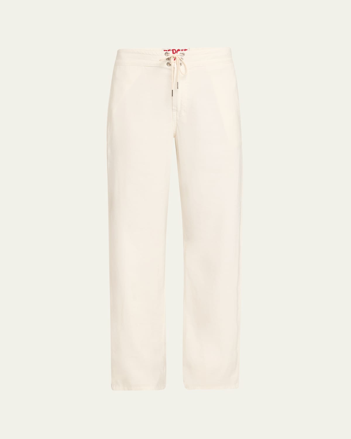 RE/DONE "The Surf Pants" finished with a laceup front Midrise; sits high on the hip Back welt pockets Wide legs Full length Tie closure Viscose/polyester Imported