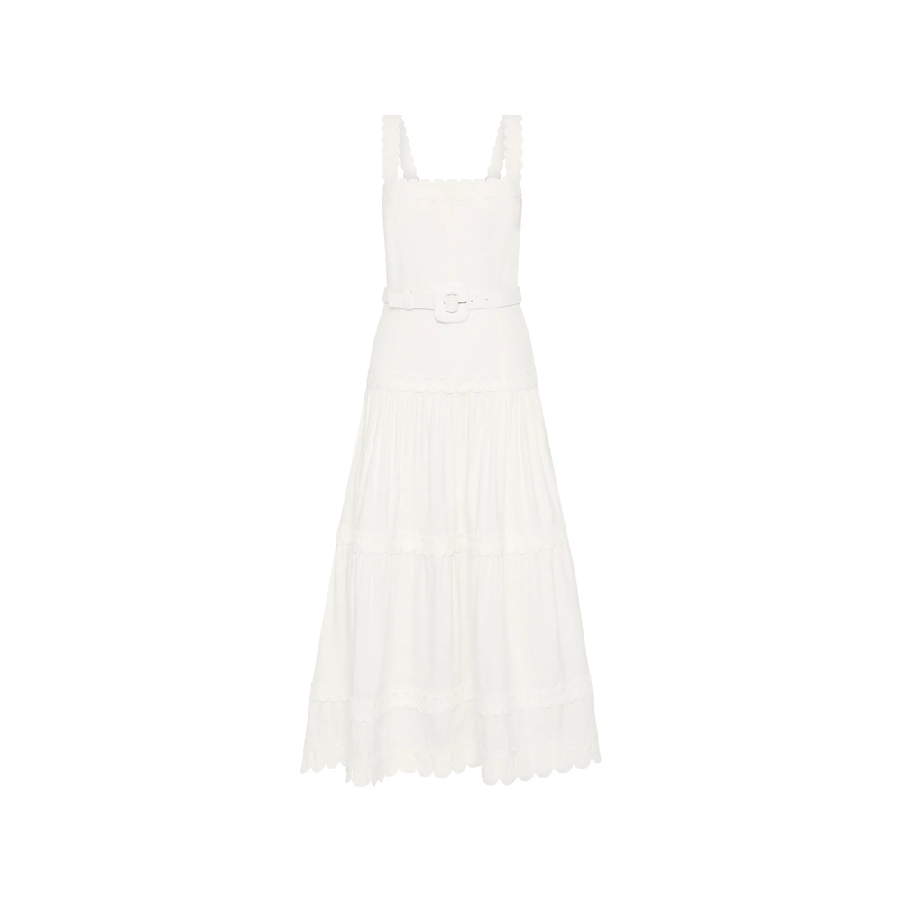 ivory belt square neck scalloped trim sleeveless