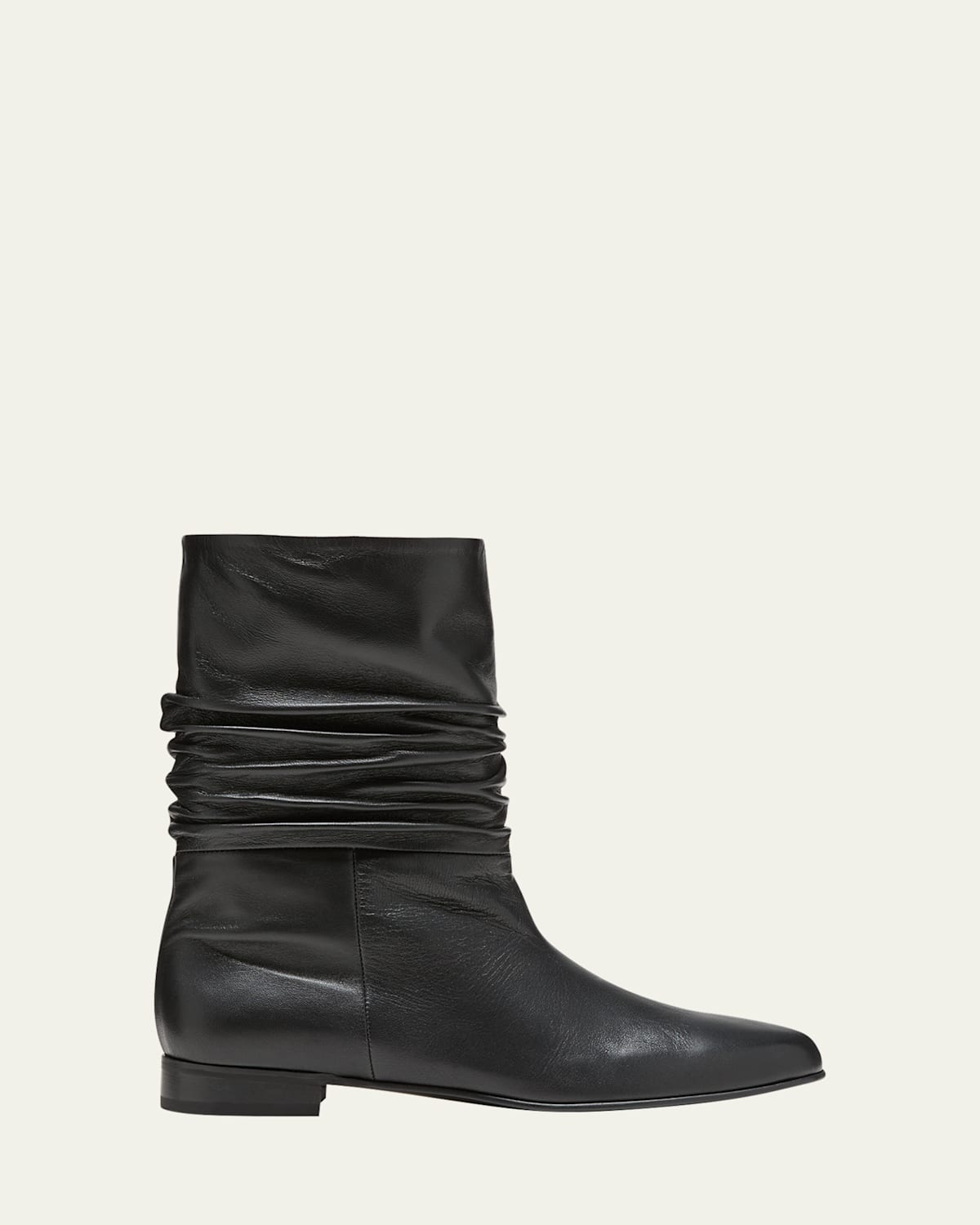 Reike Nen slouchy leather booties 0.75 in / 20 mm flat heel Round toe Slipon style Rubber outsole Lining: Leather Spot clean Imported