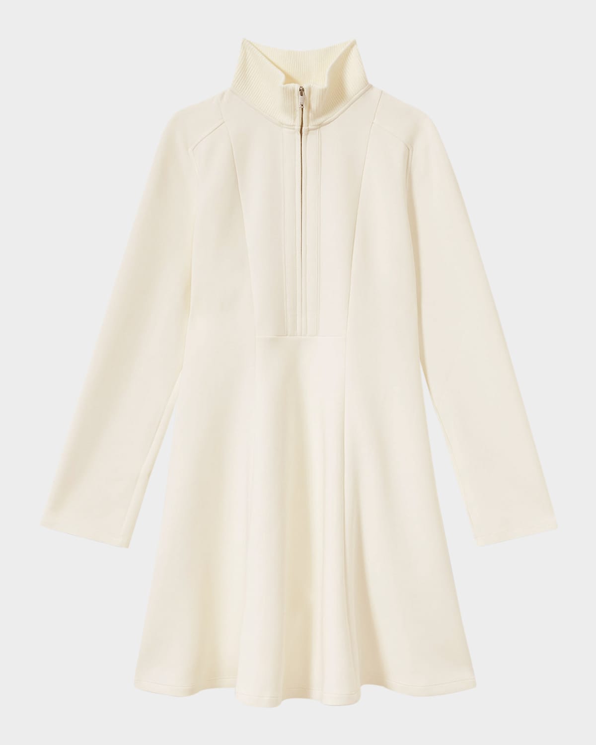 Reiss "Krysta" mini dress in an interlocked jersey knit fabric Turtleneck; half zip front Long saddle sleeves Onseam pockets Hem falls above the knee Aline silhouette Slipover style Cotton/polyester/elastane Unlined Dry clean Imported