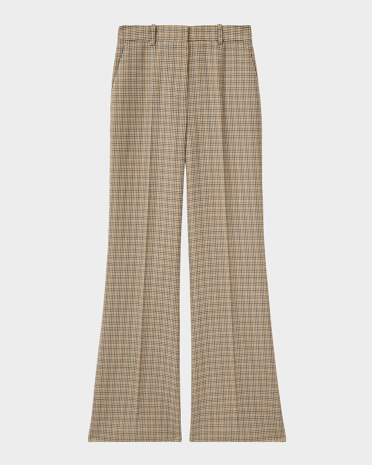 Reiss "Vida" trousers in houndstooth check Midrise sits high on the hips Flat front Side slant pockets Back welt pockets Full length Wide legs Hookandbar/zip fly; belt loops Wool Unlined Dry clean Imported
