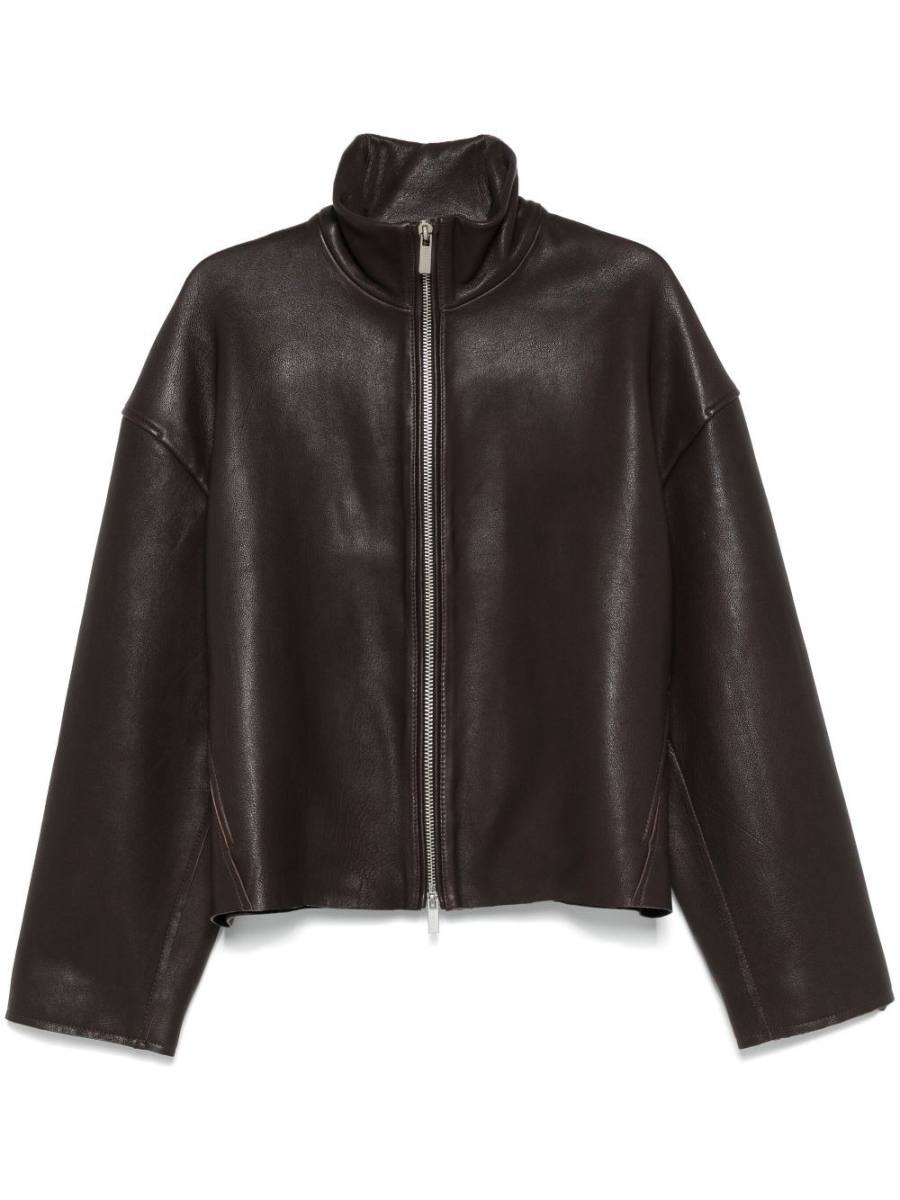 chocolate brown front zip fastening two side slit pockets branded zip puller