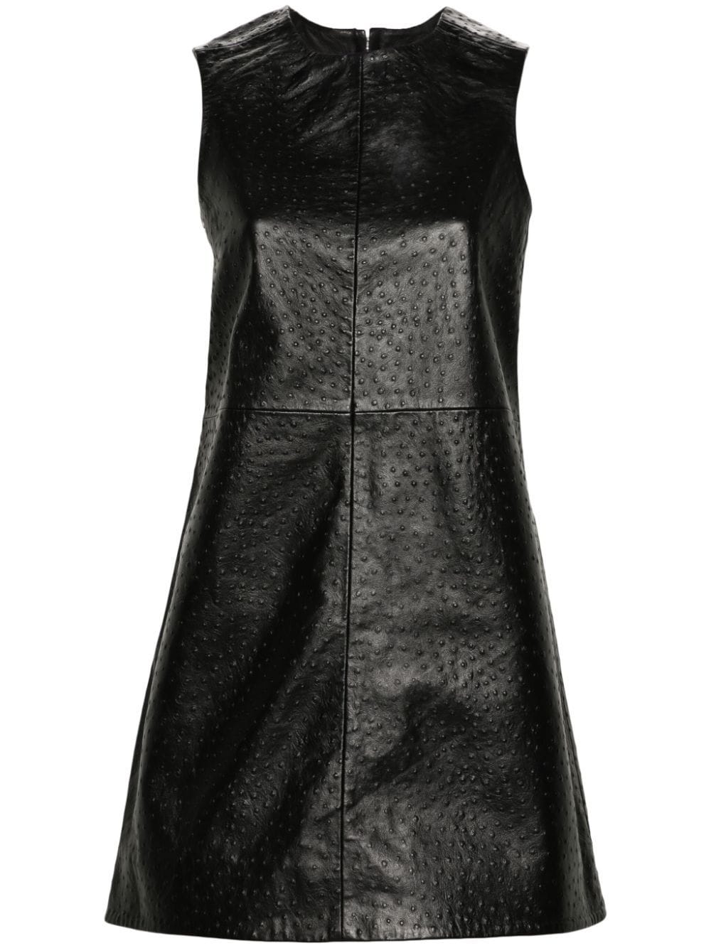 black sheepskin stretch-design round neck rear zip fastening sleeveless straight hem thigh-length