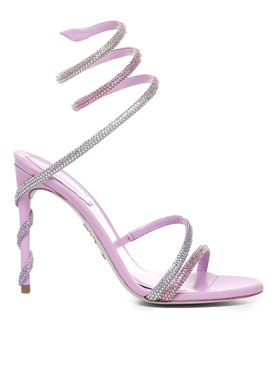 Sandales Margot, effet dégradé grâce à la combinaison de micro strass bicolores appliqués à la main, détails en forme de serpent, hauteur mm, bout rond, couleur poussière d'étoile, couleur lilas