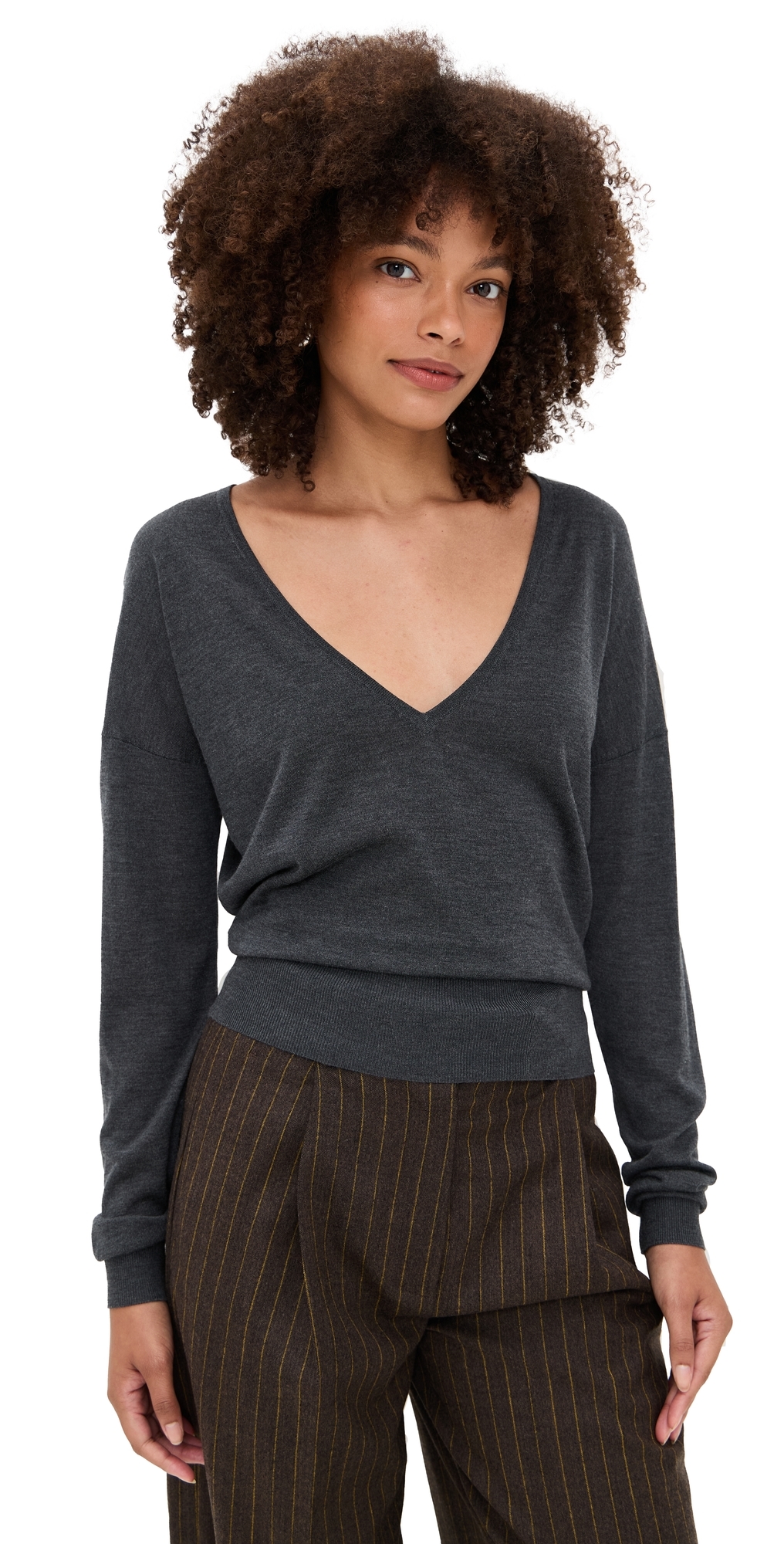 Fabric: Lightweight stretch jersey. Ribbed elastic cuffs and waistband. V neck. Long sleeves with dropped shoulders. Shell: 85% silk/15% cashmere. Hand wash. Imported, China. Measurements: Measurements from size S Length: 22.5in / 57.0cm, from shoulder