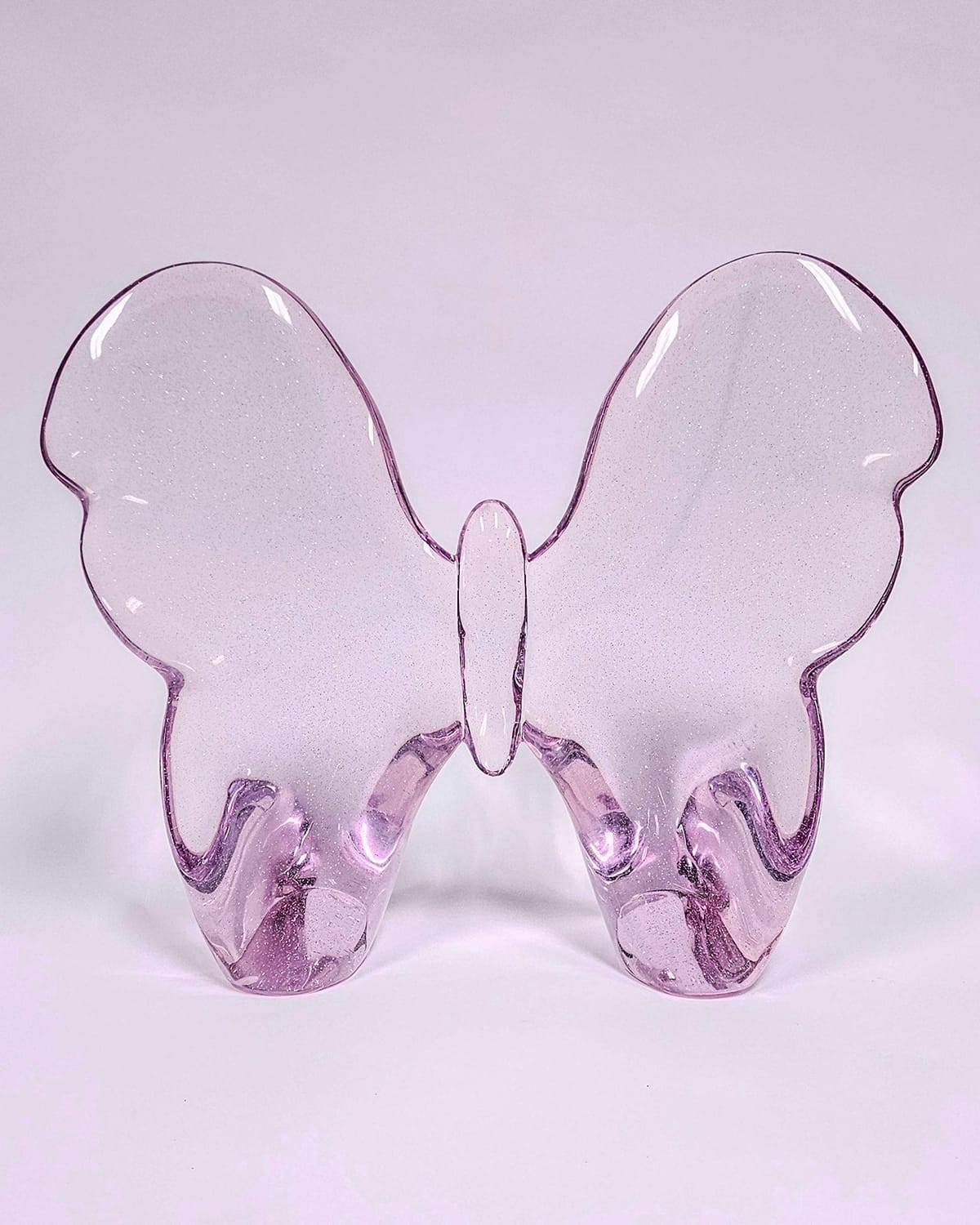Handcrafted of Lucite® acrylic by artist Mara Sfara, this butterfly sculpture shimmers with stardust and holographic sparkles. Limited edition of 9 Overall, approx. 17.5"W x 5"D x 13.5"T Wipe clean Weight, 10.3 lbs Made in USA Boxed weight, approximately 15.3 lbs