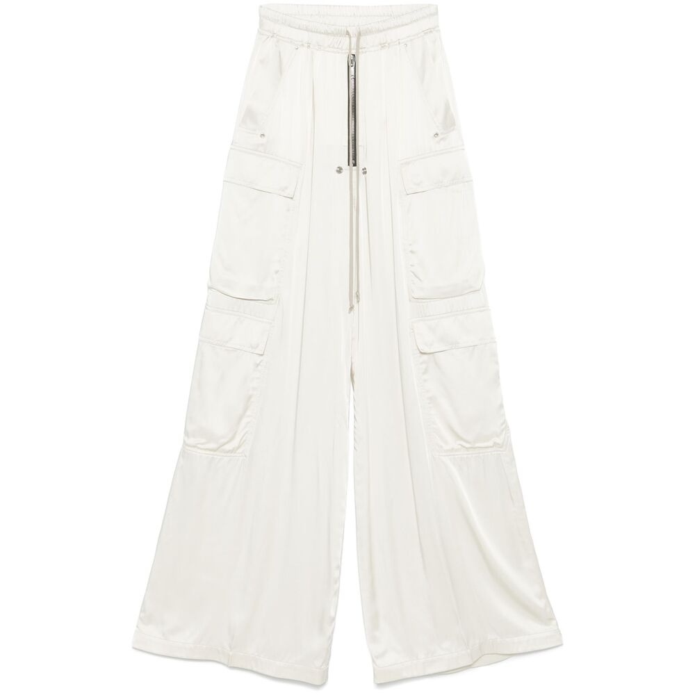 light beige elasticated drawstring waistband front zip fastening two diagonal pockets to the sides multiple cargo pockets