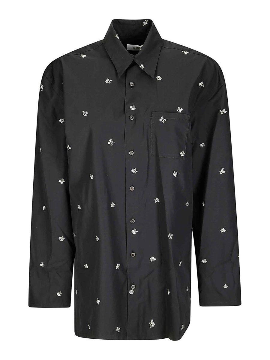 Chemise à manches longues en coton avec col fleuri brodé et devant boutonné