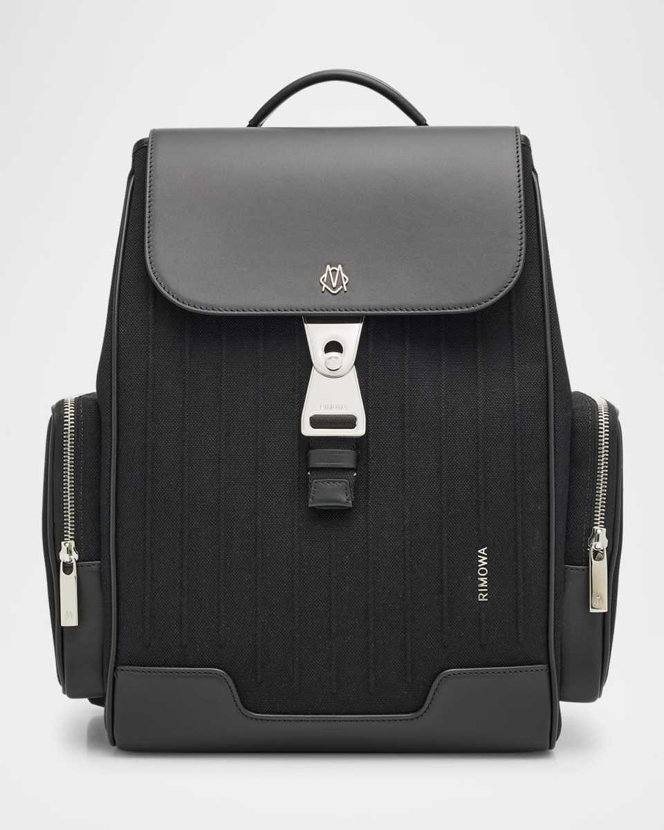 Made of durable canvas fabric and fullgrain leather Never Still collection is made with flexibility in mind Top handle Adjustable shoulder straps, 8.7"16.1" drop Flap top with buckle and drawstring closures Exterior, two size zip pouches Padded back for maximum comfort Travel strap allowing convenient attachment to suitcases Interior, 13inch laptopsized padded pocket Approx. 15.9"H x 12"W x 5.1"D Item Weight (Lbs.): 2.7 Made in Italy