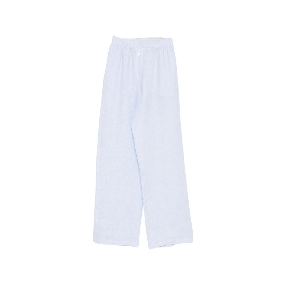 light blue pinstripe pattern elasticated waistband wide leg two side slit pockets slip-on style